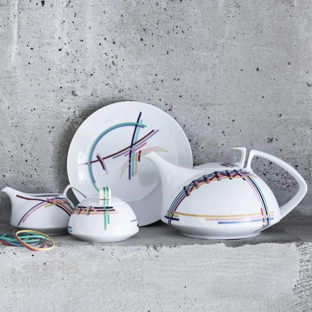 La série se caractérise par son design puriste avec des formes géométriques telles que des cercles et des sphères en foyer. Le résultat est une vaisselle influencée par le Bauhaus, mais convainc par son design intemporel.
