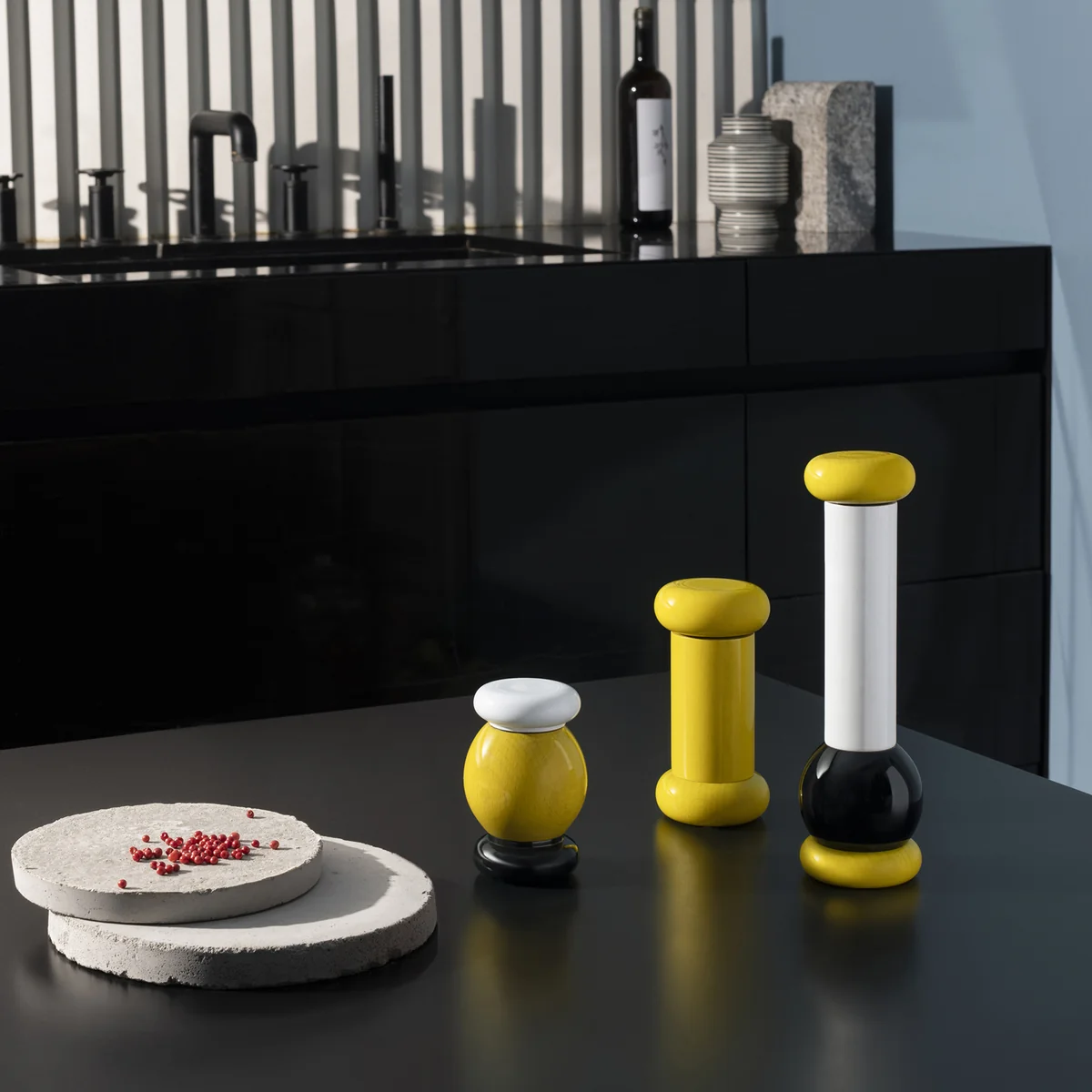 Le site Twergi sel/poivre et moulin à épices ES18 de Alessi est fabriqué en bois de hêtre certifié FSC et est disponible en plusieurs combinaisons de couleurs.