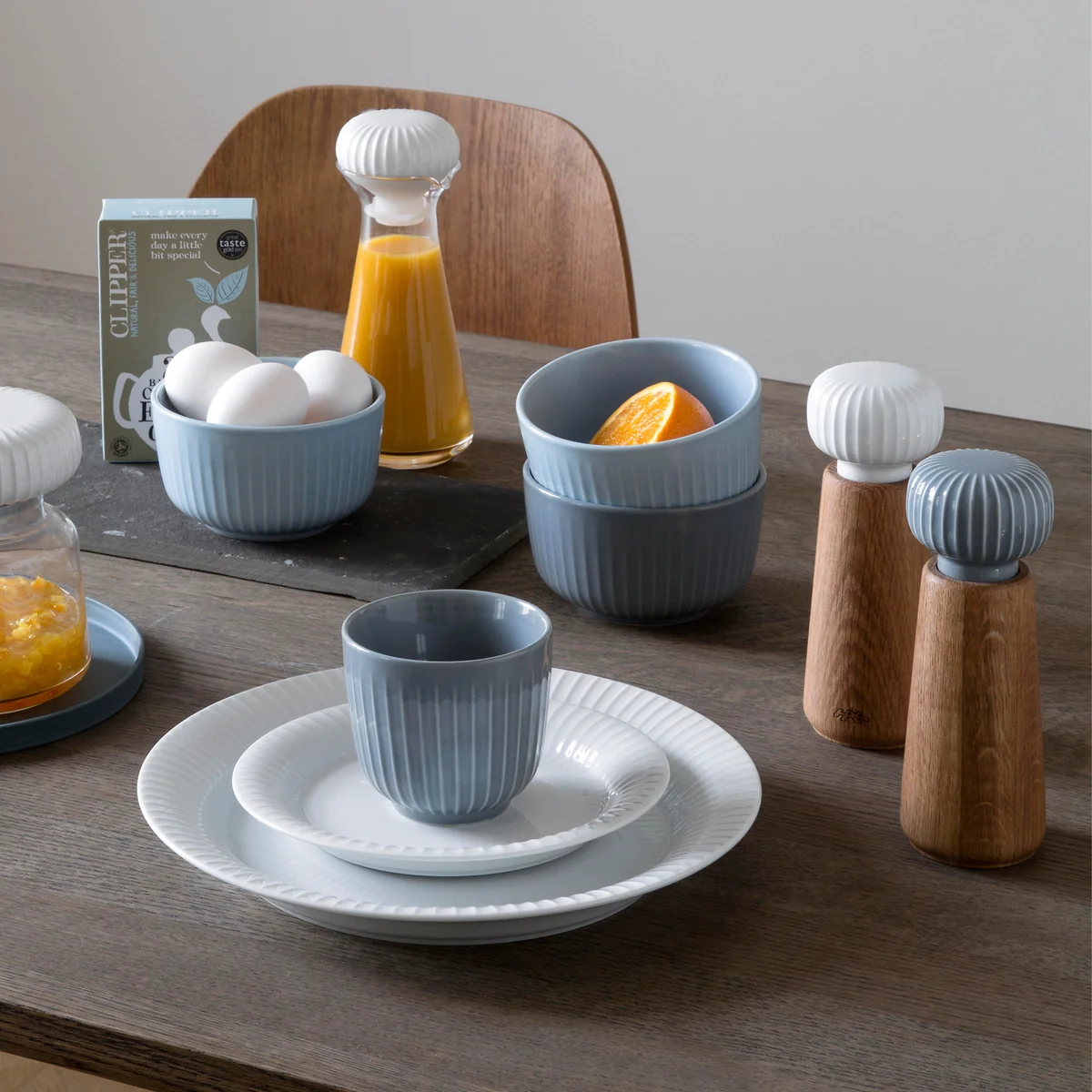 Avec un corps en bois et un tête élégante en céramique - assortis au sel et au poivre, les moulins à épices Kähler Design sont des compléments idéaux à la série de vaisselle de la collection Hammershøi. Les rainures ne sont pas seulement un détail visuel choisi, mais la structure facilite la prise en main pour une meilleure rotation de la tête, ce permet de moudre le sel et le poivre en un tour de main.
