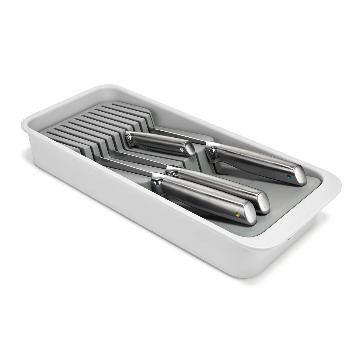 Le DrawerStore Organiseur de couteaux de Joseph Joseph offre une solution sûre et peu encombrante pour ranger les couteaux dans le tiroir de la cuisine. Il protège à la fois des blessures et des dommages causés aux lames délicates.