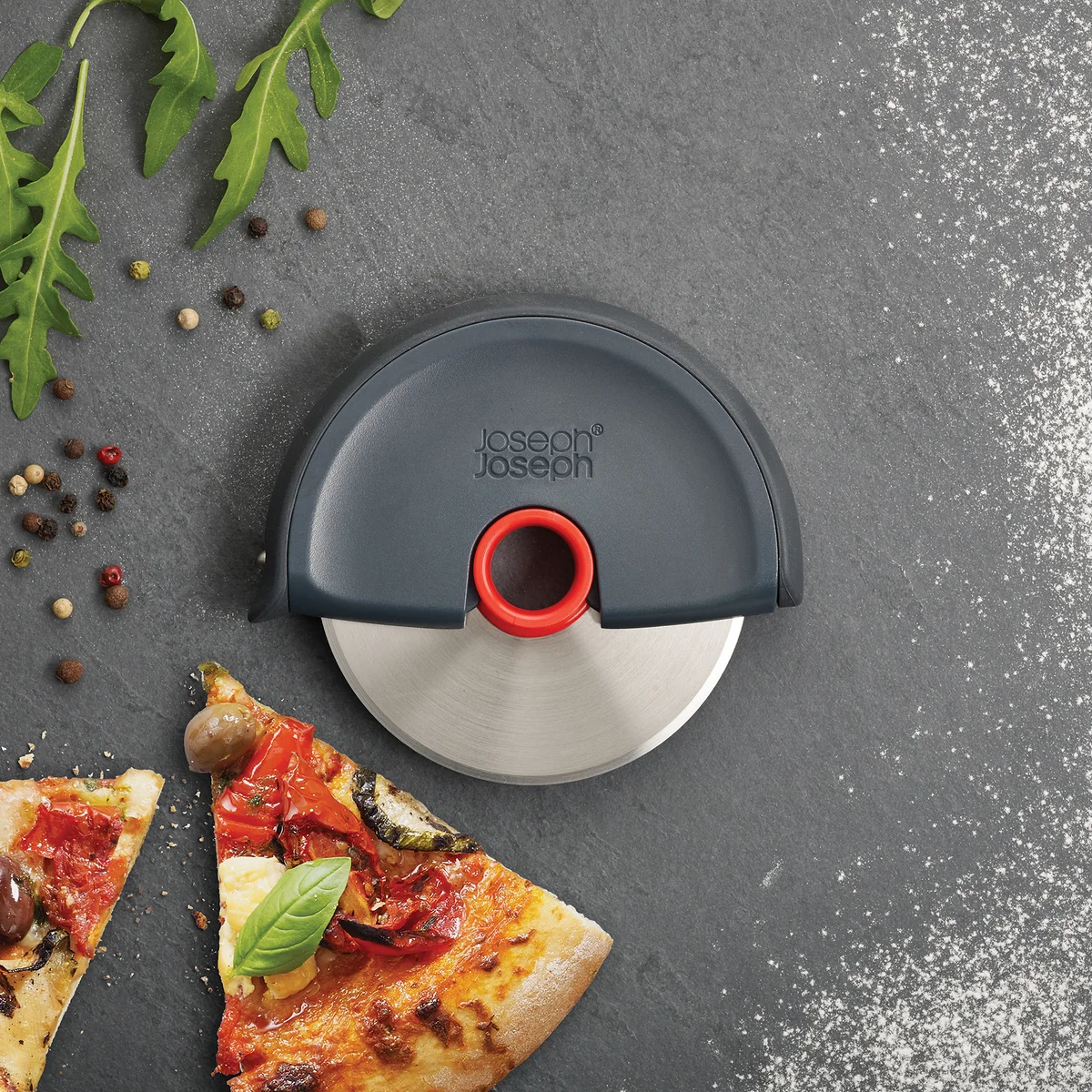 Que ce soit pour la pizza, la pâtisserie ou de la pâte, la roulette à pizza de Joseph Joseph est un indispensable pour chaque cuisine. Le design ergonomique propose une poignée intelligente qui permet de ranger la roulette en toute sécurité car elle protège la lame. La lame en acier inoxydable est logée dans un boîtier malin prévu à cet effet. Il est possible de la retirer pour la nettoyer.