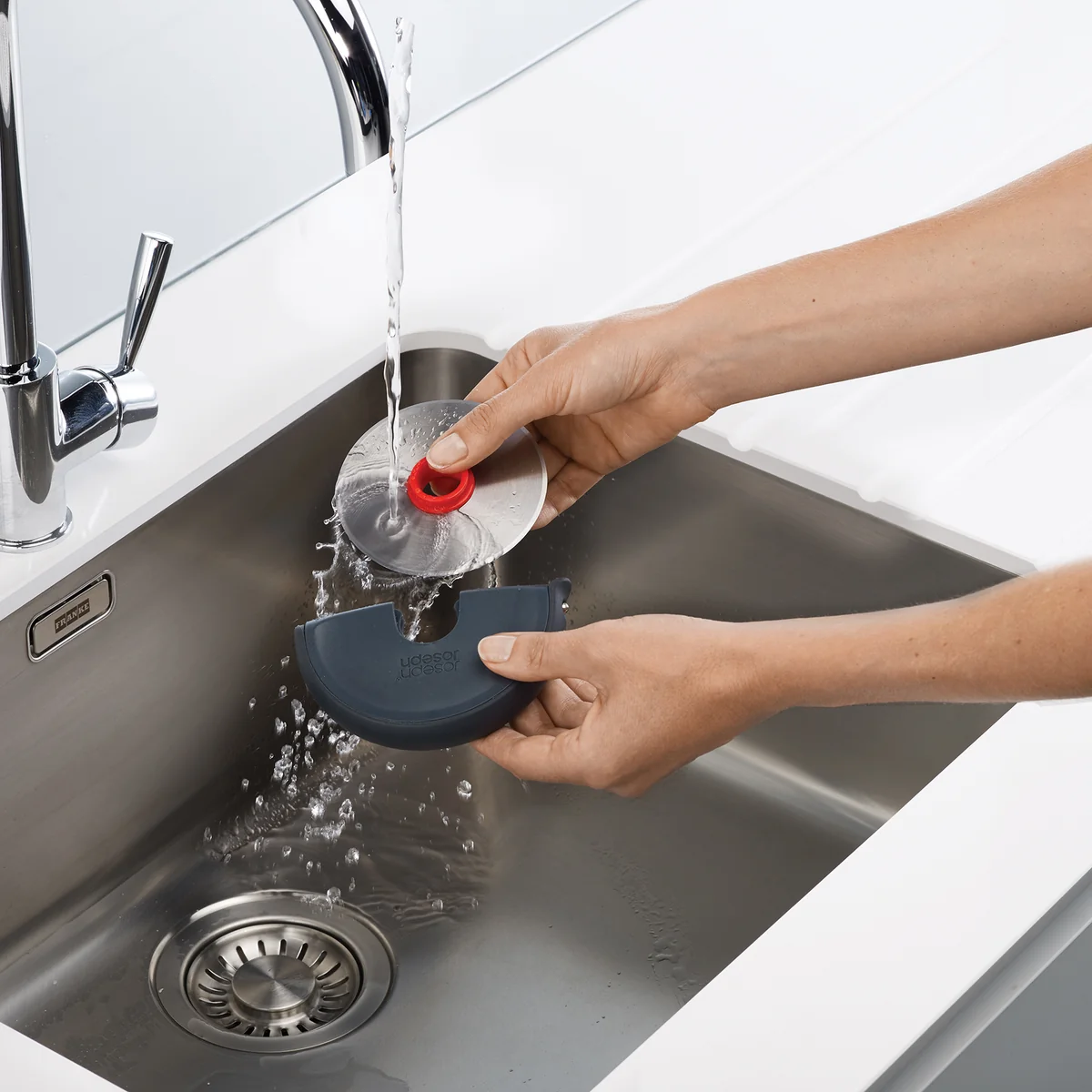 La roulette à pizza Disc de Joseph Joseph est fabriquée en acier inoxydable et en silicone exempt de BPA. Facile à nettoyer, la roulette à pizza Disc est résistante au lave-vaisselle.