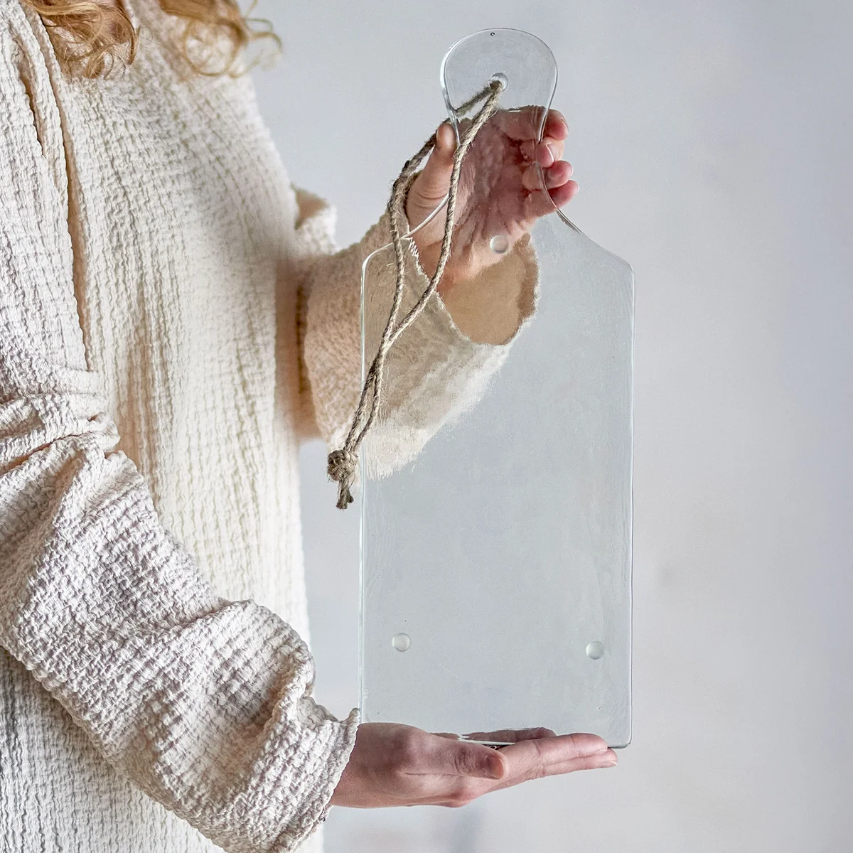 La planche de service Johni allie design élégant et durabilité. Fabriquée en verre recyclé et conçue en forme de planche à découper, elle est idéale pour servir avec style des snacks, des tapas ou des plateaux de fromages. Le cordon de jute pratique à l'extrémité supérieure permet un rangement facile et confère à la planche un charmant accent naturel. Parfait pour les soirées conviviales en famille ou entre amis.