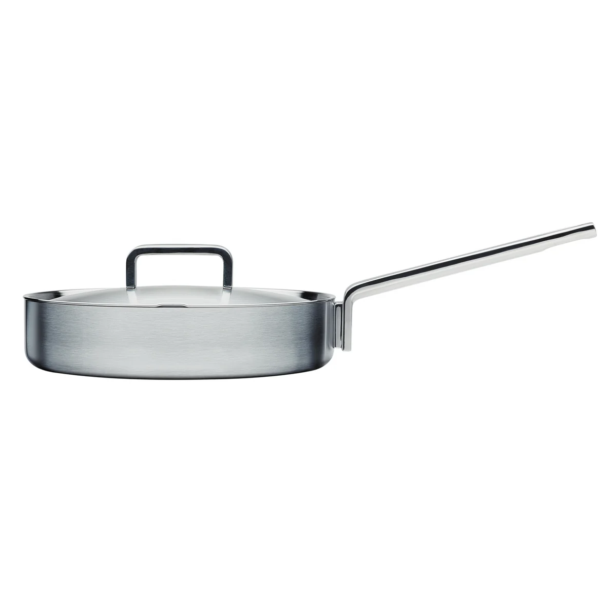 La sauteuse Iittala se compose d’un matériau composite d’acier et d’aluminium. Il y a un noyau interne en aluminium entre la surface intérieure et extérieure en acier. Il permet que la poêle s’échauffe assez rapidement et que la chaleur est conduite de façon optimale.