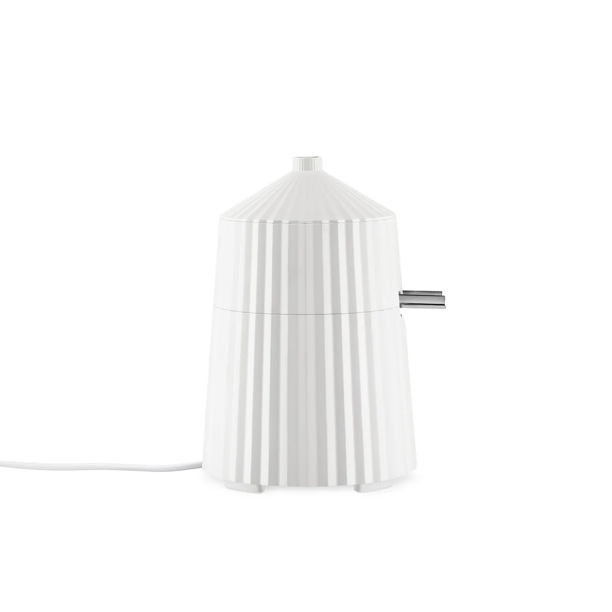 Le boîtier est - caractéristique de la Plissé collection - est orné d'encoches verticales, ce qui lui confère un look élégant et attire l'attention sur chaque ligne de cuisine. Le couvercle amovible complète l'aspect propre du presse-citron et empêche l'accumulation de saletés à l'intérieur de l'appareil. Des verres et des tasses de taille standard peuvent être placés sous le bec verseur qui peut être fermé.