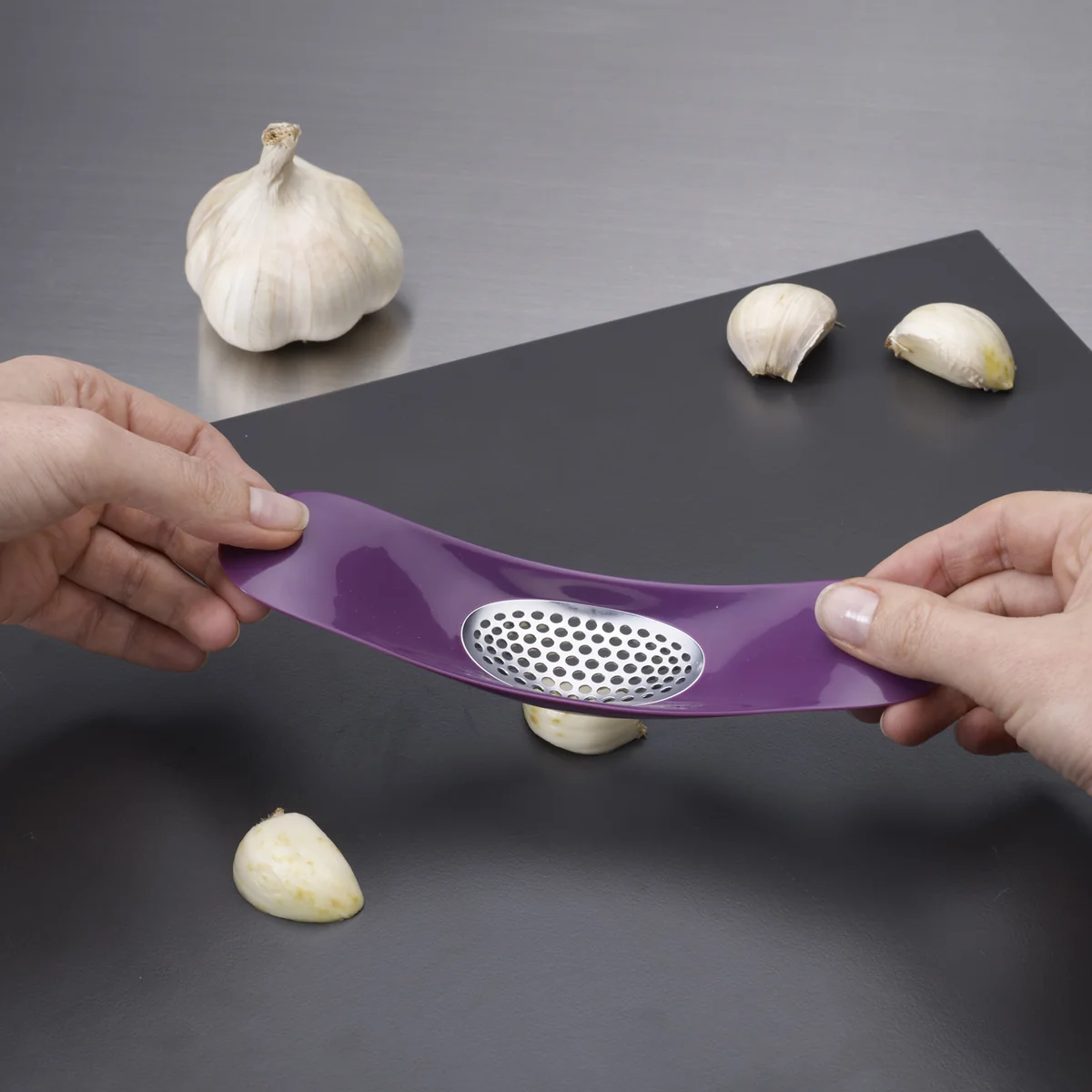 Le design élégant du presse d’ail Garlic Rocker par Joseph Joseph rend un travail salissant beaucoup plus simple : Par la pression et un mouvement de berceau, les gousses d’ail sont rapidement et efficacement coupés et repoussés vers le haut à travers la grille perforée.