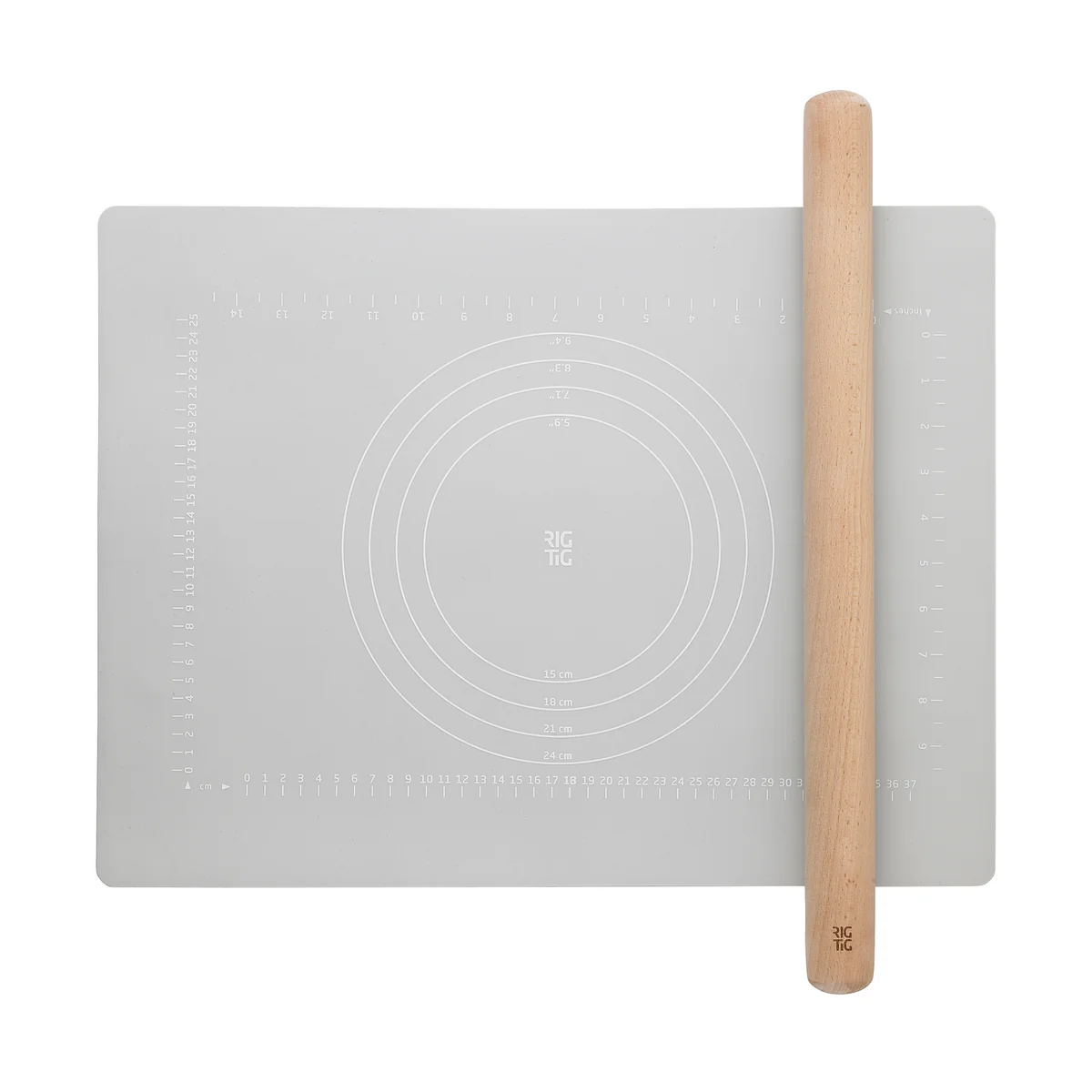 Il est temps de se remettre à la pâtisserie. Le dessous de plat de Rig-Tig by Stelton est en silicone et empêche la pâte de coller au plan de travail. Le support résiste au four jusqu'à 230 degrés. Il suffit d'étaler la pâte sur le support avec le rouleau à pâtisserie et de la mettre au four sur le support.