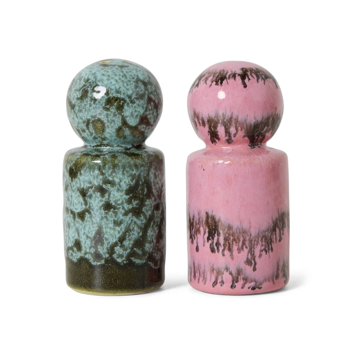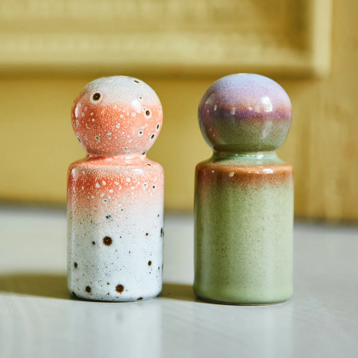 Les salières et poivrières de HKliving sont une pièce très spéciale de la collection et égayent chaque repas avec leur design exclusif. Leurs superbes couleurs et motifs, ainsi que leur forme cylindrique évasée avec une boule, font sensation et sont en même temps très pratiques. Ils sont dotés d'un petit bouchon en silicone qui peut être retiré et passent donc au lave-vaisselle.