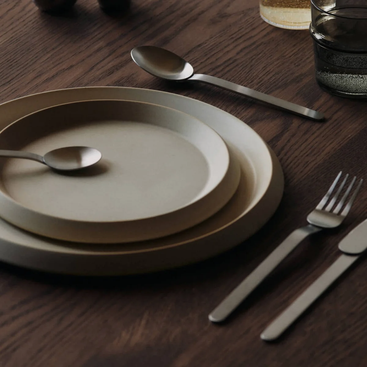 Le set de couverts Stelo de Ferm Living est un hommage contemporain aux principes du design Bauhaus : lignes claires, forme fonctionnelle et précision architecturale. Nommé d'après le mot italien stelo (manche) combiné avec steel, il allie des proportions filigranes à une fonctionnalité robuste. Les couverts fabriqués en acier inoxydable plié à plat donnent l'impression d'être coulés dans le même moule - soudés de manière invisible et dotés d'une finition mate. Le manche élancé soulève légèrement l'ustensile, ce qui donne une impression de clarté et d'élégance sur toutes les tables dressées.