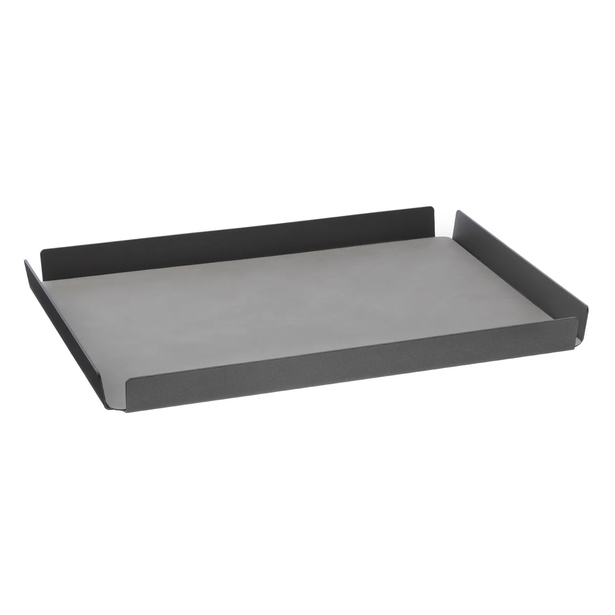 Le plateau Tray Square en taille L (36 x 46 cm) de Lind DNA est un plateau décorative en aluminium avec un insert en cuir recyclé. Cet insert peut se retirer et se changer. Il est disponible dans plusieurs coloris sobres, vous permettant d'adapter le plateau à chaque situation et de l'utiliser à maints égards. Le cuir recyclé (80 % cuir et 20 % caoutchouc) n'est pas seulement un bon exemple d'utilisation de matériaux durables mais en plus, il est très résistant et facile à nettoyer. Ce contraste né de l'aluminium froid et du cuir chaud et souple apportera une note d'originalité pour servir ou décorer vos plats.