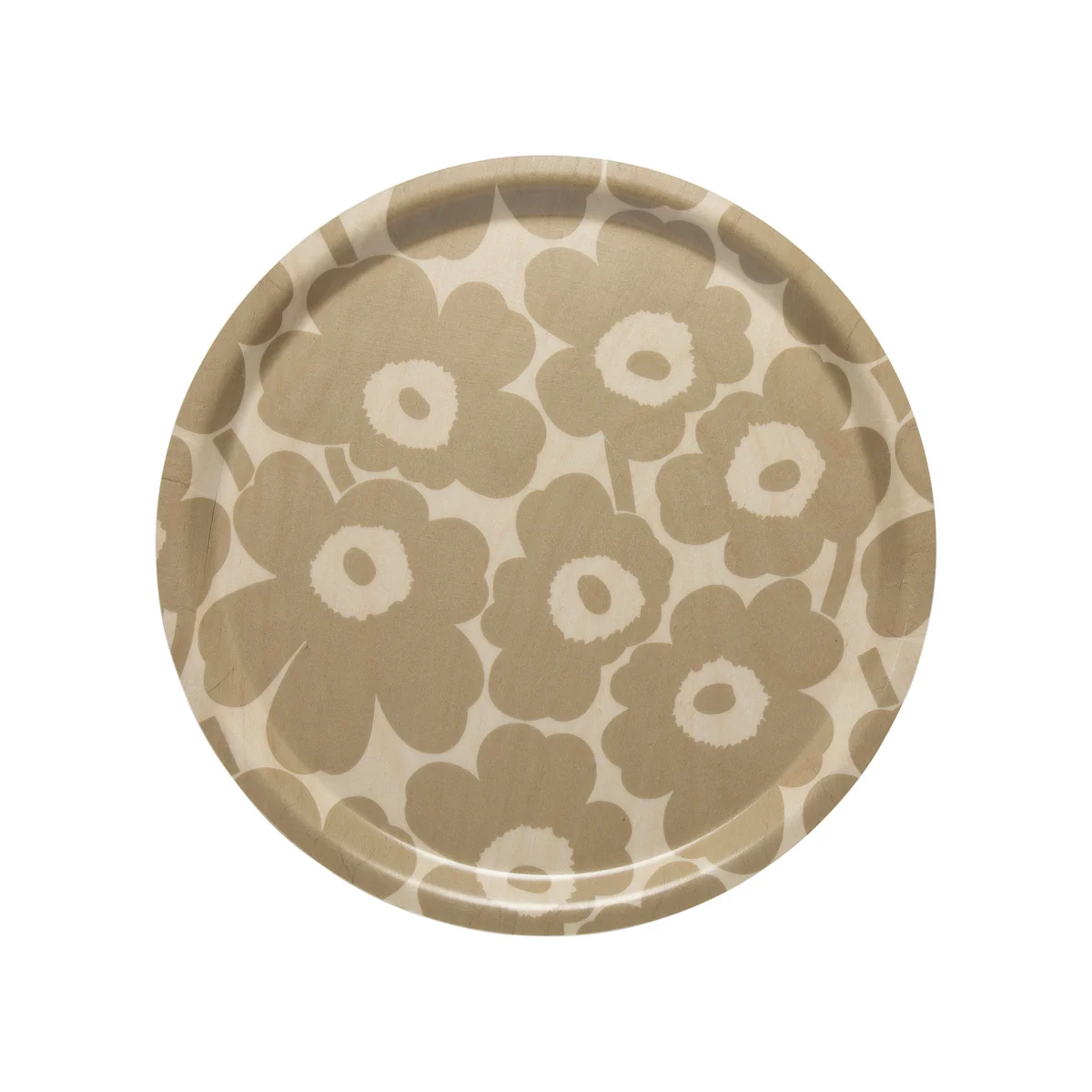 Marimekko présente la ronde Mini Unikko Le plateau est en contreplaqué de bouleau, c'est pourquoi il est recommandé de le nettoyer à la main.