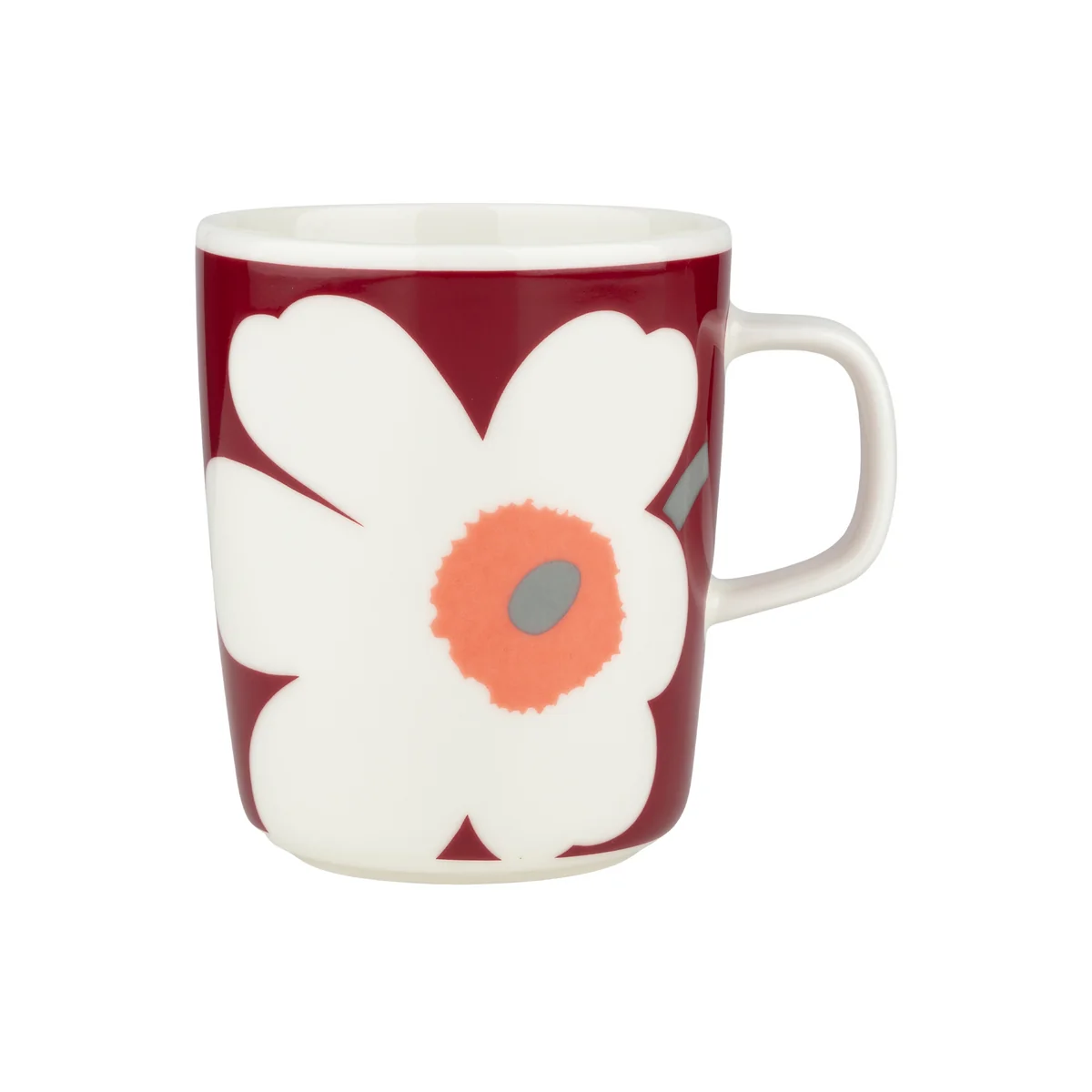 La tasse fait partie de la série de vaisselle Oiva. Les lignes simples de la série mettent en valeur le motif floral. D'une contenance de 200 ml, 250 ml ou 400 ml, la tasse Unikko de la série Oiva peut contenir un grand café, mais bien sûr aussi un thé ou toute autre boisson. Le fabricant finlandais fabrique cette tasse design en grès. Marimekko Marimekko Marimekko