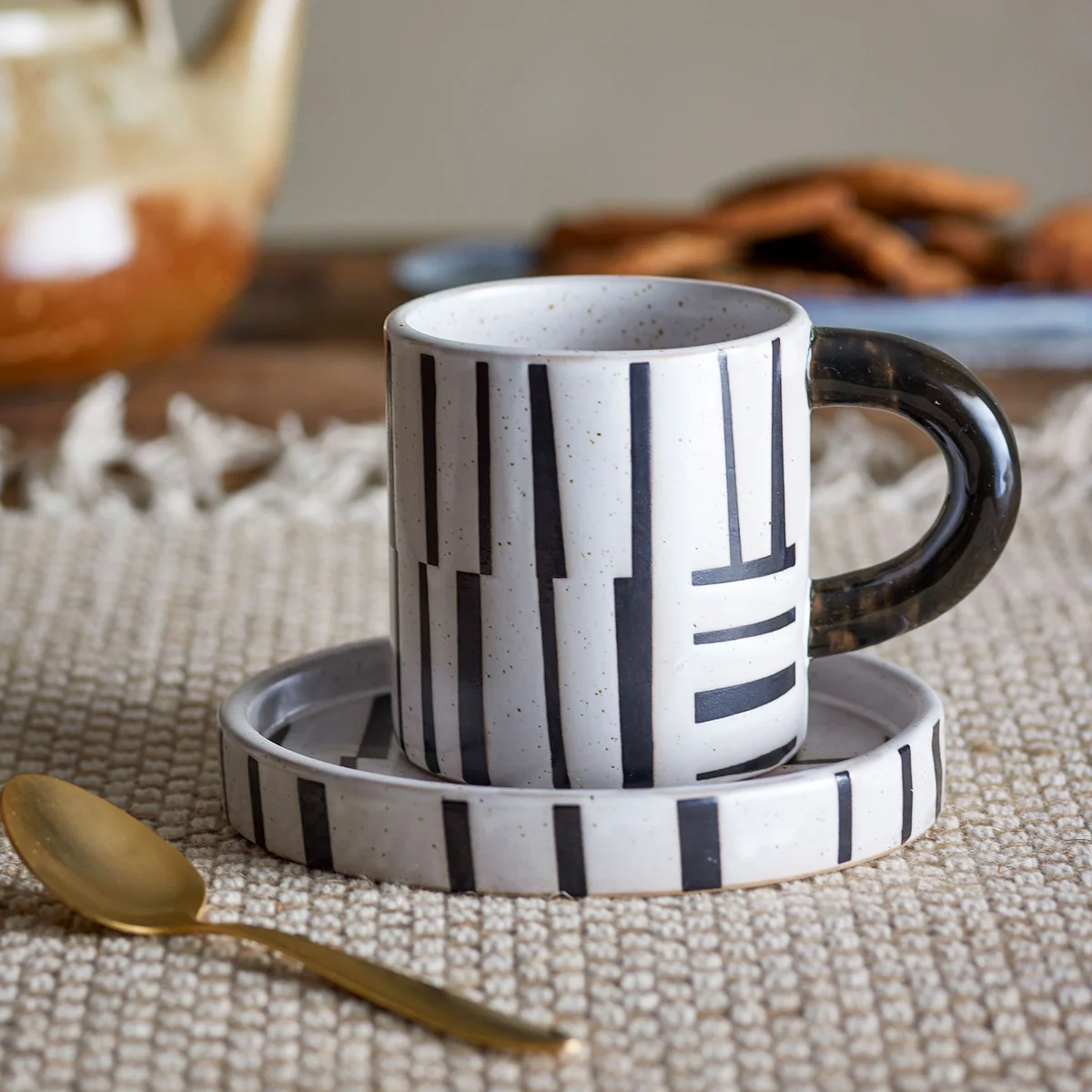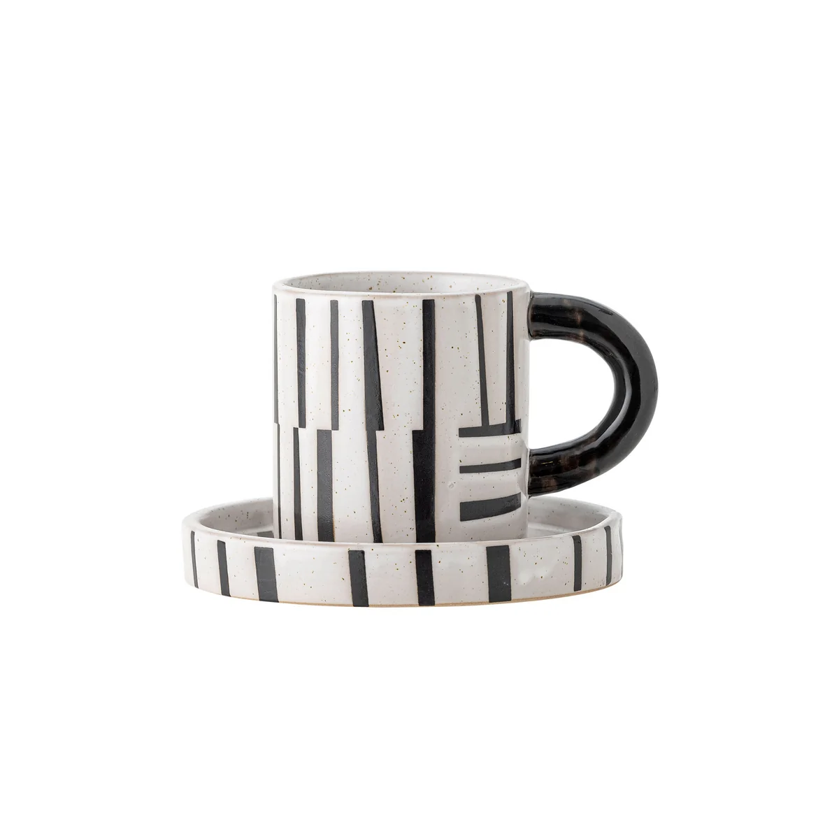 La tasse et la soucoupe Frankie se distinguent par leur design graphique moderne et leur élégante couleur noire. L'ensemble en faïence de qualité supérieure convient aussi bien à une utilisation commune qu'à une utilisation séparée - parfait pour déguster une boisson chaude avec un petit snack sur la soucoupe. Un set élégant qui donne une touche moderne et individuelle à chaque arrangement de table.