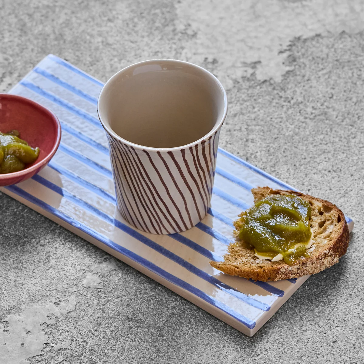 La tasse Diva de House Doctor allie qualité artisanale et design vivant. Le motif à rayures peint à la main fait de chaque tasse une pièce unique, tandis que la forme légèrement conique assure une prise en main agréable et une consommation confortable. Fabriquée en grès de qualité supérieure, elle apporte de la couleur et de l'individualité à votre table et convient parfaitement pour le café, le thé ou le chocolat chaud. Idéalement combinable avec des séries sobres ou colorées pour apporter une touche personnelle au quotidien.