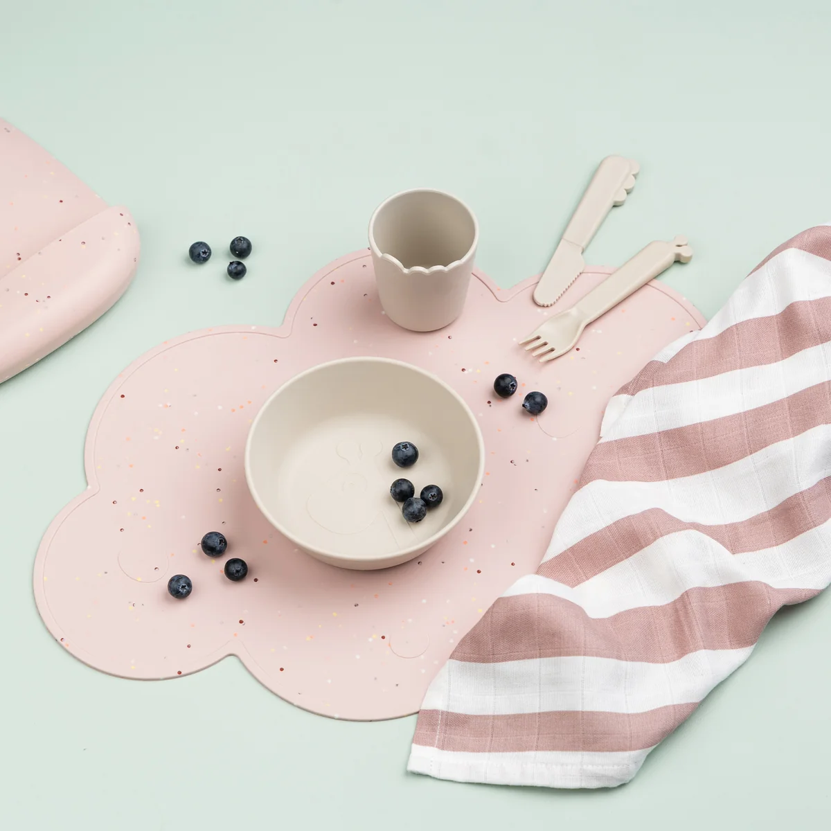 Son design antidérapant garantit que les assiettes et les bols restent bien en place, même lorsque les petites mains s'y appuient ou tentent de les déplacer. Sa taille généreuse offre suffisamment de place pour les assiettes, les bols et les verres tout en protégeant la table des salissures et des rayures.
