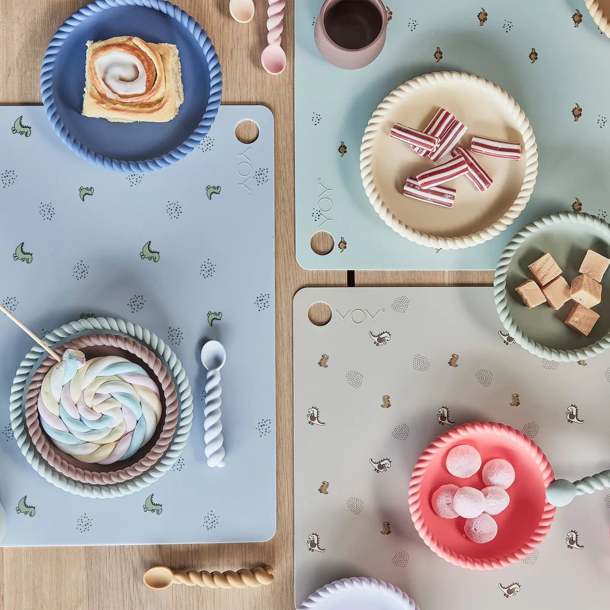 Le set de table Dino de OYOY est une décoration de table très appréciée des enfants, notamment de ceux qui s'intéressent aux dinosaures. Ces sets de table sont fabriqués dans un matériau lavable et sont donc particulièrement adaptés à un usage quotidien et faciles à nettoyer. Disponibles en différents modèles, les sets de table sont un must-have pour attirer les enfants à la table du dîner de manière ludique.