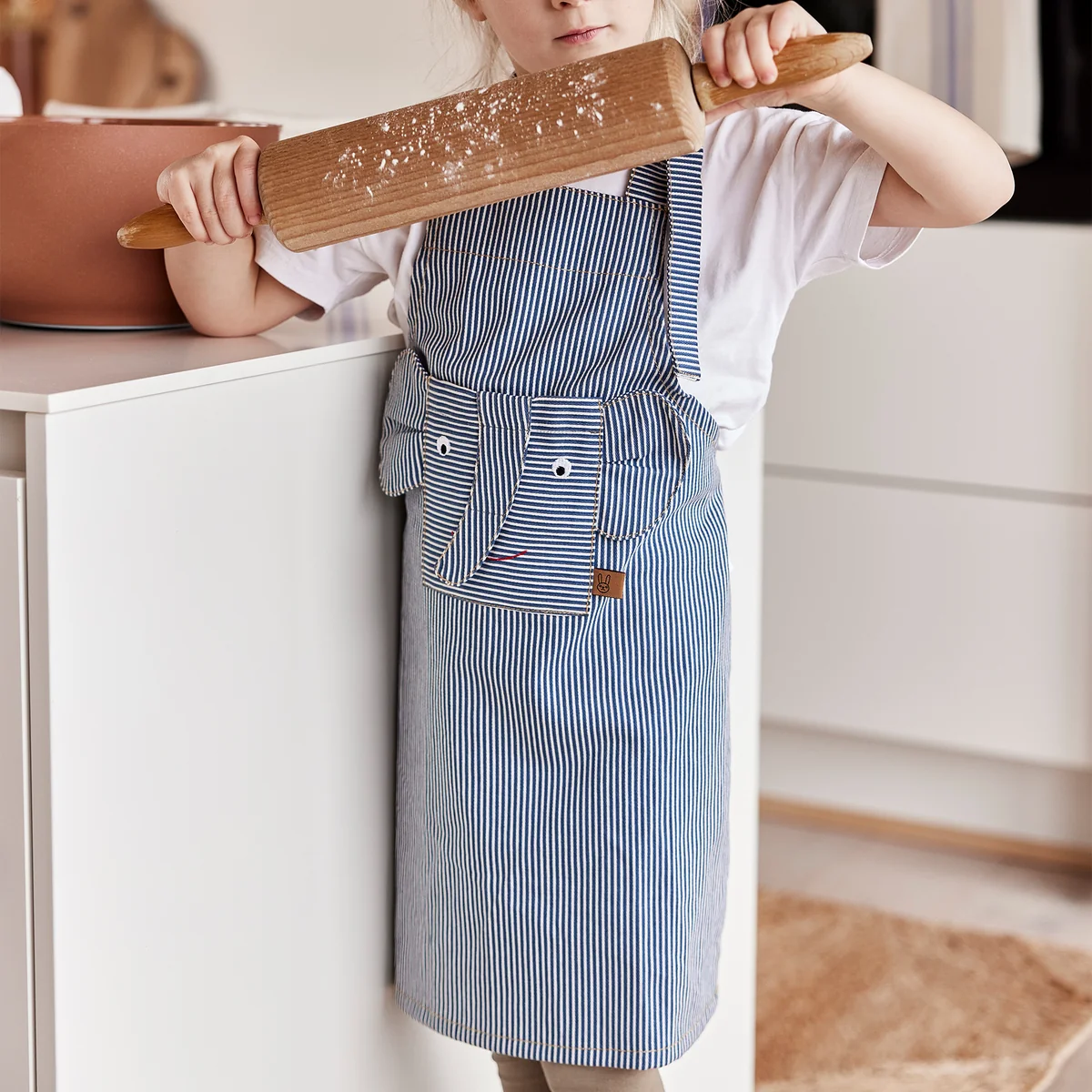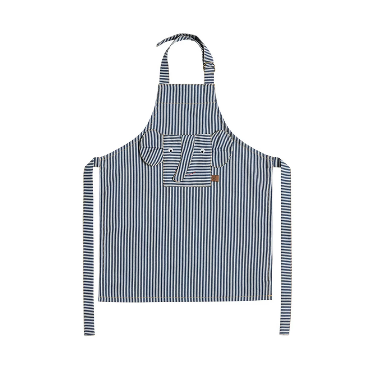 OYOY Mini - Tablier éléphant en denim rayé, bleu