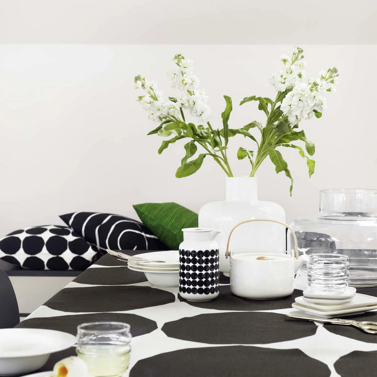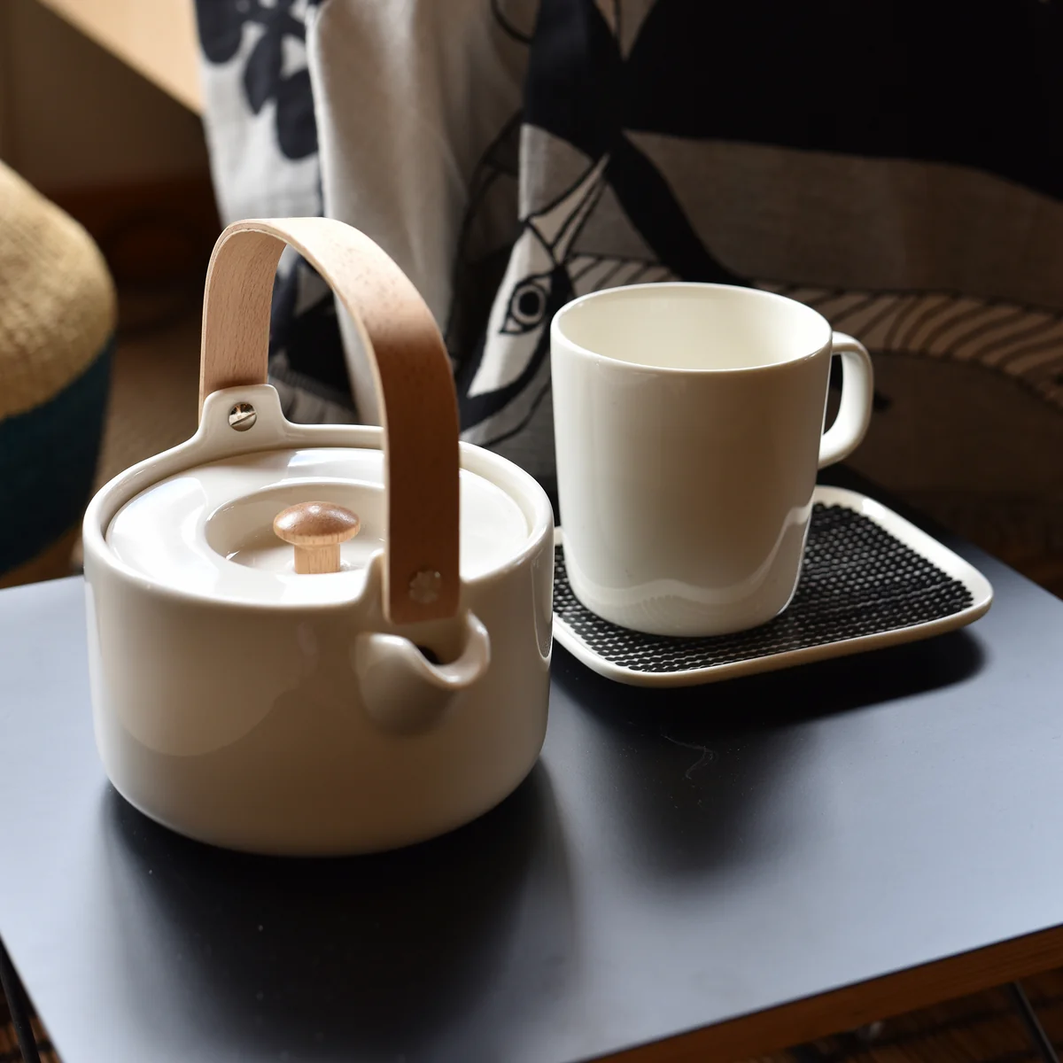 Le design vient de Sami Ruotsalainen, qui a conçu la théière Oiva . Dans le cadre de la collection Siirtolapuutarha, la verseuse décorative est également disponible avec un motif noir et blanc. Pour ceux qui l'aiment un peu plus classique, la verseuse Oiva en blanc ou terra est la théière parfaite.