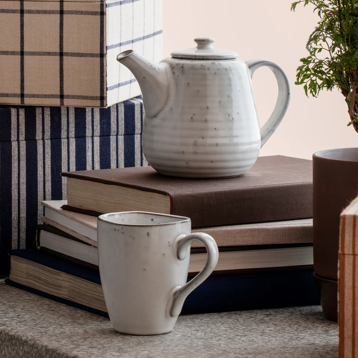 La théière Nordic Sand est l'expression de la sobriété nordique et de l'élégance naturelle. Fabriquée en grès émaillé réactif dans un ton sable chaud, elle séduit par sa forme organique et sa structure de surface individuelle. L'émail réactif fait en sorte que chaque pièce est unique - avec de légères variations de couleur et une profondeur vivante. La théière est idéale pour passer des heures de détente à table et se combine avec style avec d'autres pièces de la série Nordic Sand.