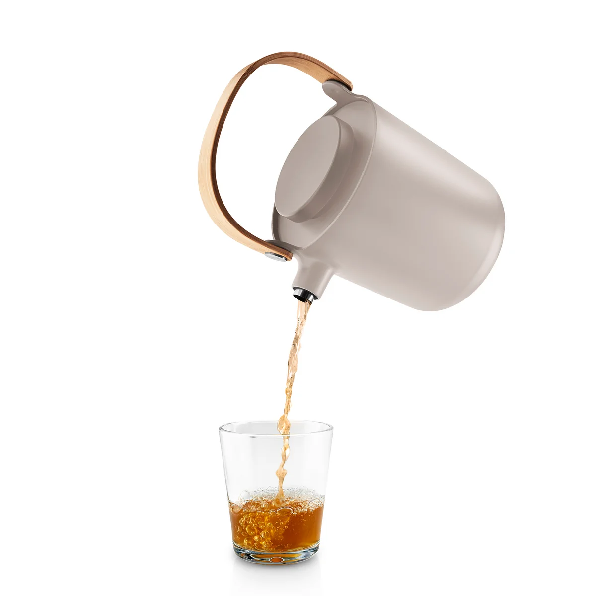 Le Nordic Kitchen Thermos à thé de la maison Eva Solo est indispensable grâce à son aspect élégant et sa grande fonctionnalité. Les lignes épurées et la combinaison très esthétique de plastique, d'acier inoxydable et de bambou s'intègrent parfaitement dans un environnement moderne. Le thermos peut être utilisé à merveille pour préparer et servir le thé. Le filtre amovible se retire facilement dès que les feuilles de thé sont passées. La poignée en bambou peut être placée à la verticale ou rabattue pour prendre le moins de place possible dans le réfrigérateur. Le Nordic Kitchen Le thermos à thé est entièrement anti-gouttes et l'insert thermique en acier garde votre thé préféré chaud pendant des heures.
