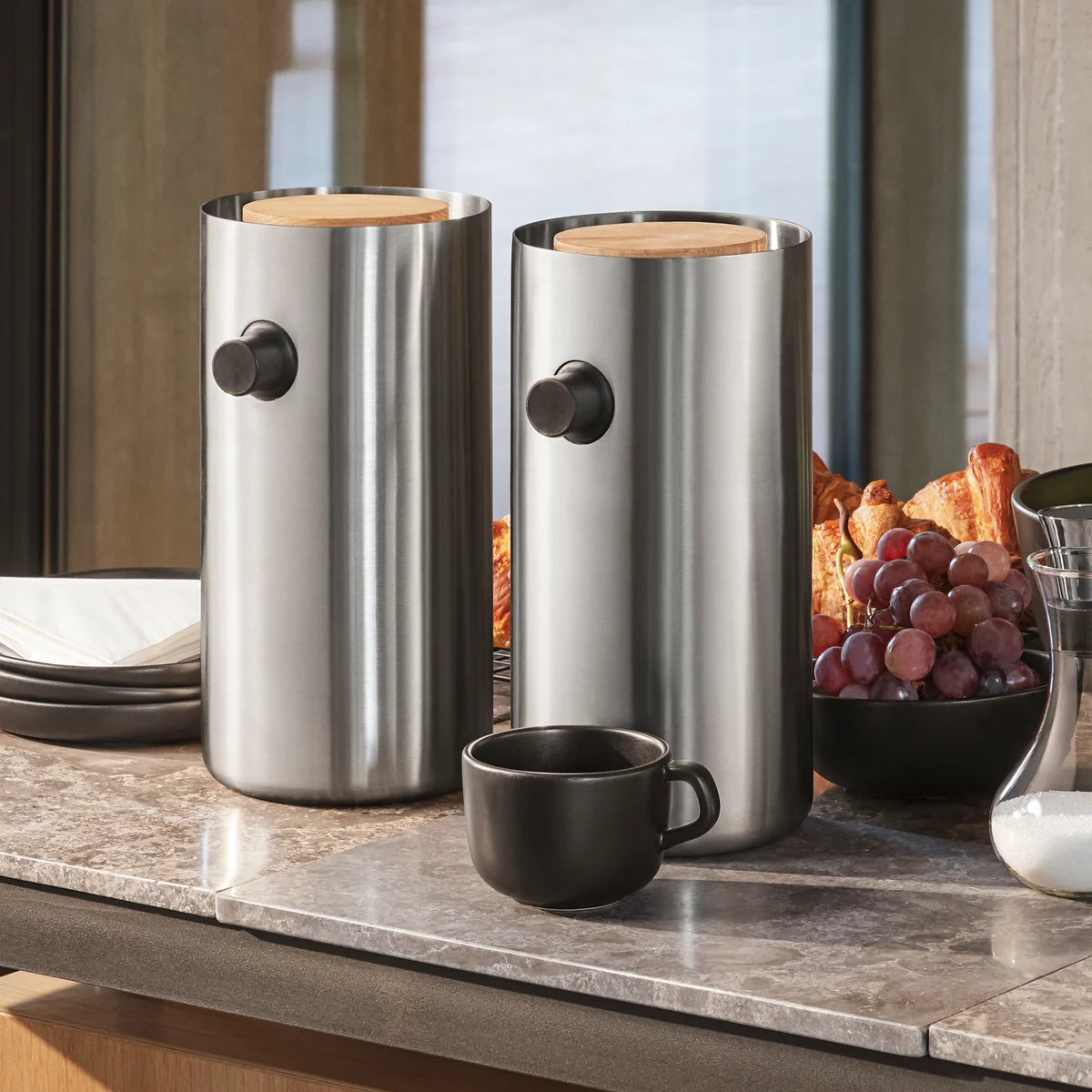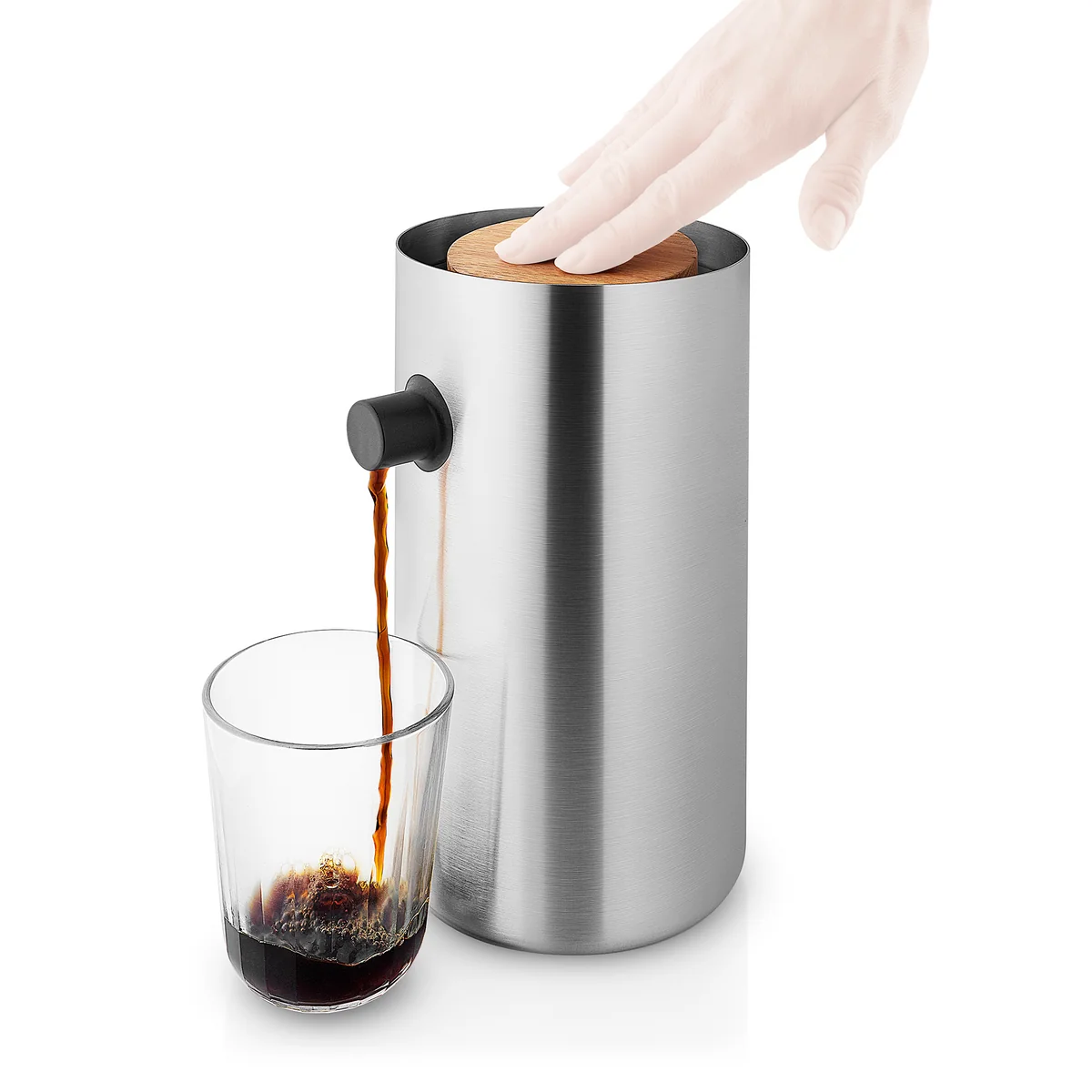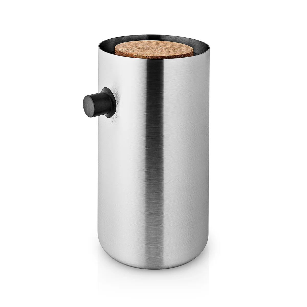 Le thermos à pompe Nordic Kitchen de Eva Solo séduit par son design minimaliste et sa fonctionnalité pratique. Le pichet peut être utilisé à merveille lors de fêtes ou de réunions avec toute la famille. Mais il est également idéal pour les déplacements, que ce soit au travail ou pour les pique-niques d'été. Il suffit d'appuyer sur le couvercle en bois de chêne pour servir le café et le thé. Le système de pompage extrêmement intelligent du thermos garantit au moins 30.000 coups de pompe.