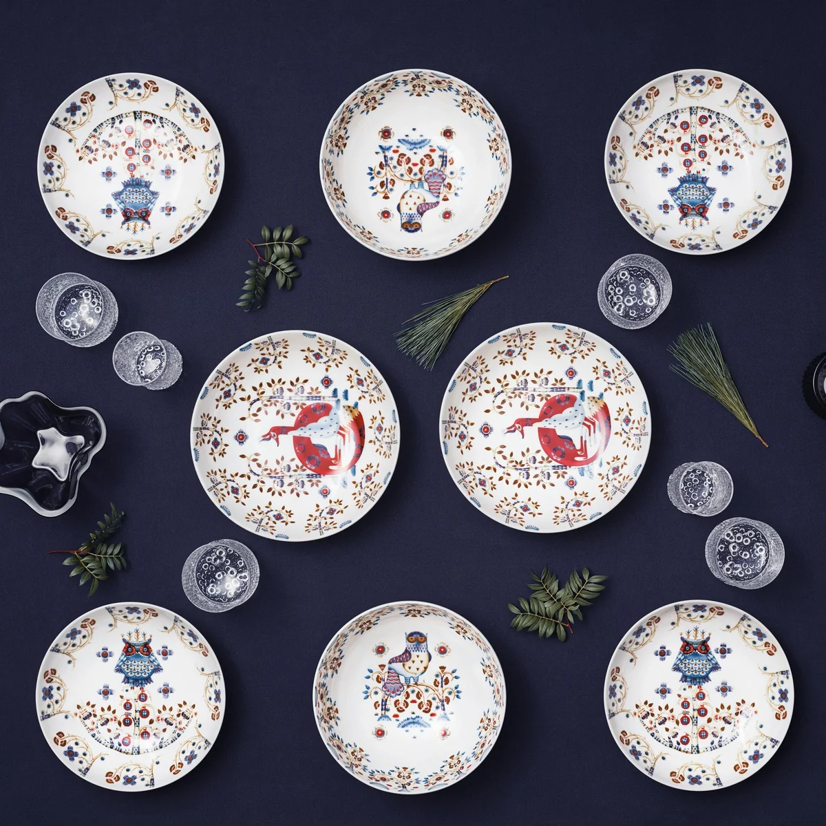 L'assiette Taika d'Iittala apporte une note féerique à la table de la salle à manger grâce à ses illustrations détaillées. Le design conçu par Klaus Haapaniemi s'inspire du folklore nordique et confère à l'assiette une qualité narrative unique. Les motifs artistiques forment un contraste saisissant avec la forme sobre et intemporelle conçue par Heikki Orvola.