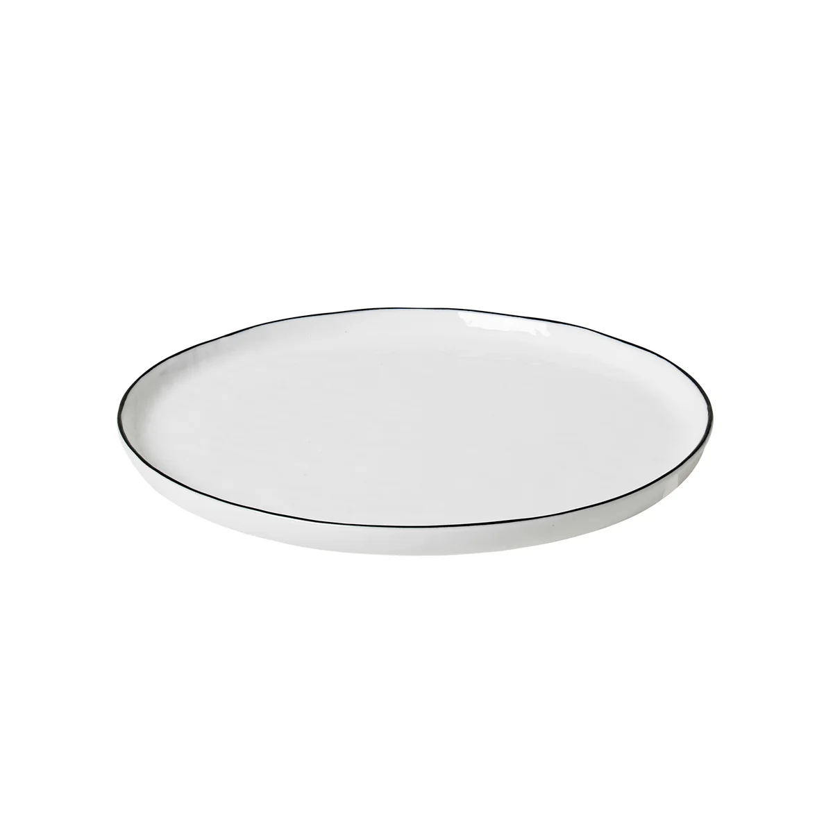 L'assiette Salt de Broste Copenhagen fait partie de la collection du même nom, qui se caractérise par des formes classiques alliant élégance et netteté. L'émail blanc est complété par des bords noirs peints à la main. C'est au cours du processus de cuisson que l'émail acquiert sa texture et sa couleur distinctes, rendant chaque pièce de vaisselle unique.