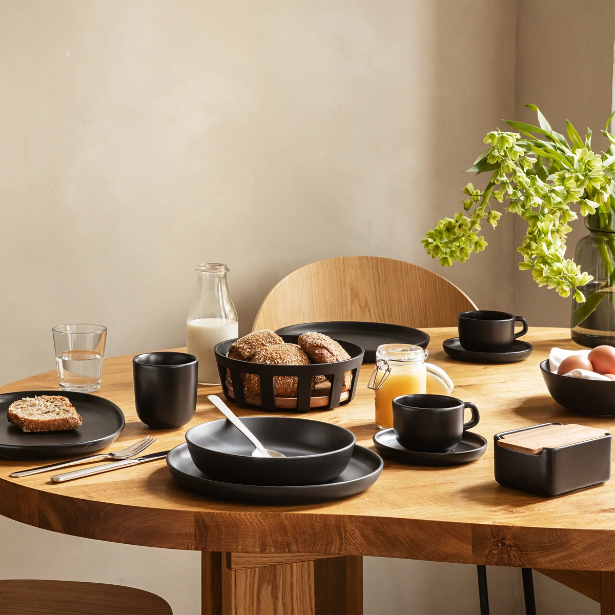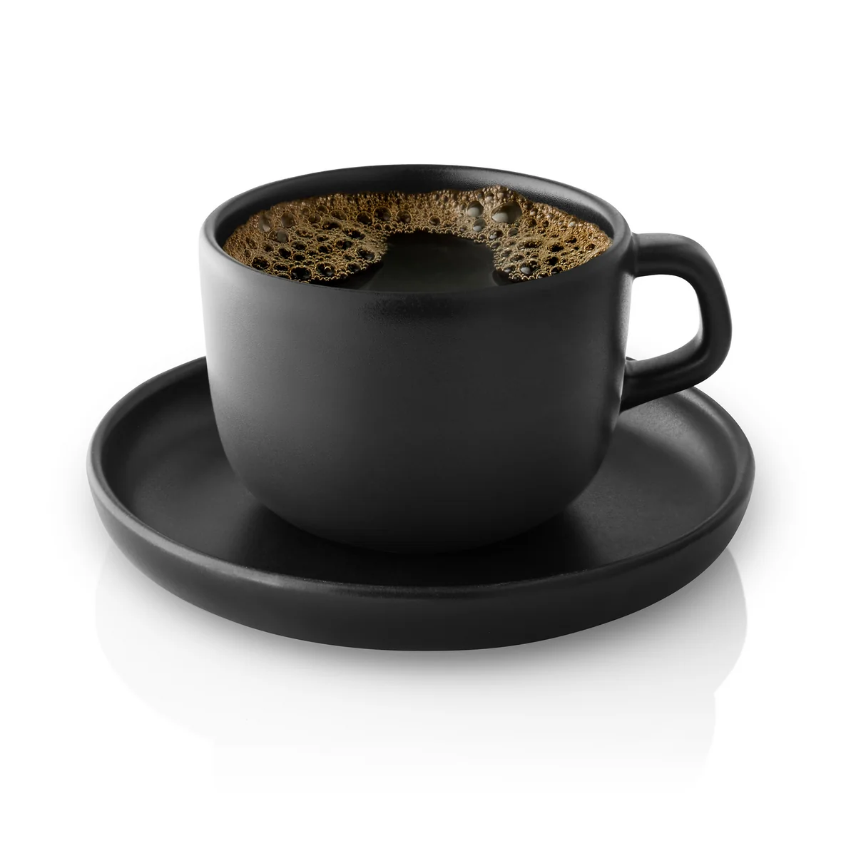 La tasse et la soucoupe de la Nordic Kitchen de Eva Solo a un charme de maison de campagne frappant et accrocheur qui diffuse la touche nordique de la série. Fabriquées en grès de haute qualité, la tasse et la soucoupe ont un bel aspect mat qui complète parfaitement le décor de la table. Les tasses modernes permettent de déguster non seulement du café, mais aussi du thé, du lait, du cacao ou d'autres boissons chaudes. Ils peuvent être combinés avec d'autres produits de la gamme Nordic Kitchen Série .