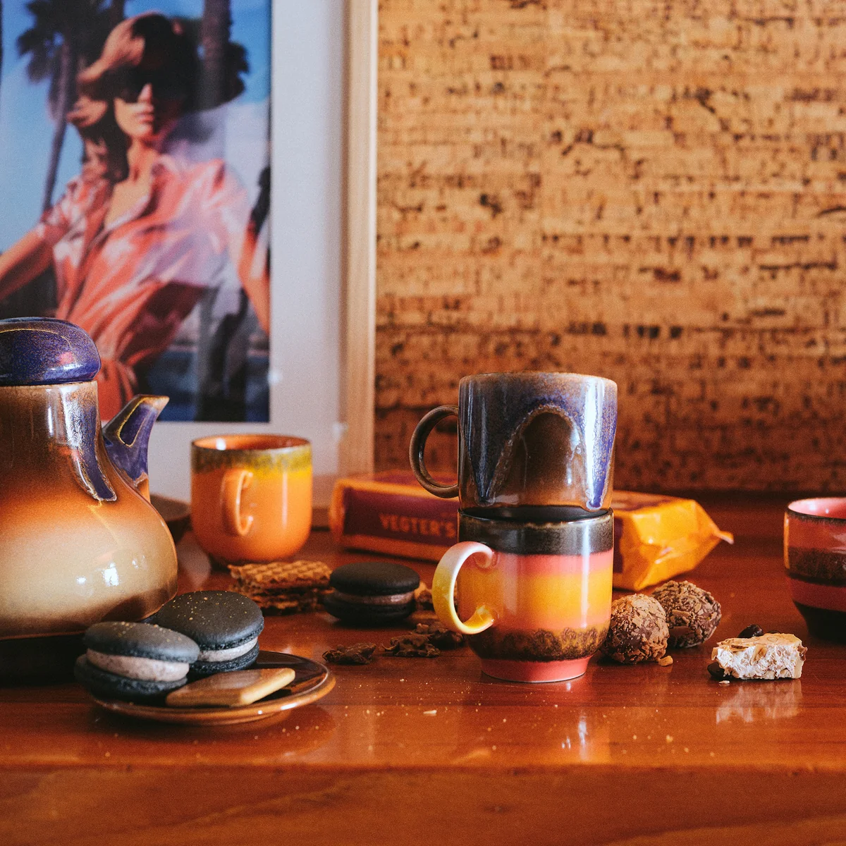 La tasse à café 70's de HKliving enchante et transporte tout le monde dans une époque révolue. La collection 70's est un hommage à l'art du café. Chaque élément de cette série - des tasses et soucoupes couleur terre aux pots à sucre et à lait bizarres, en passant par les cafetières flamboyantes - a été soigneusement fabriqué pour refléter le passé tout en offrant une durabilité contemporaine. La palette de couleurs riche et accueillante et les motifs groovy créent un spectacle visuel qui vous invite à savourer votre café dans un style vintage authentique.