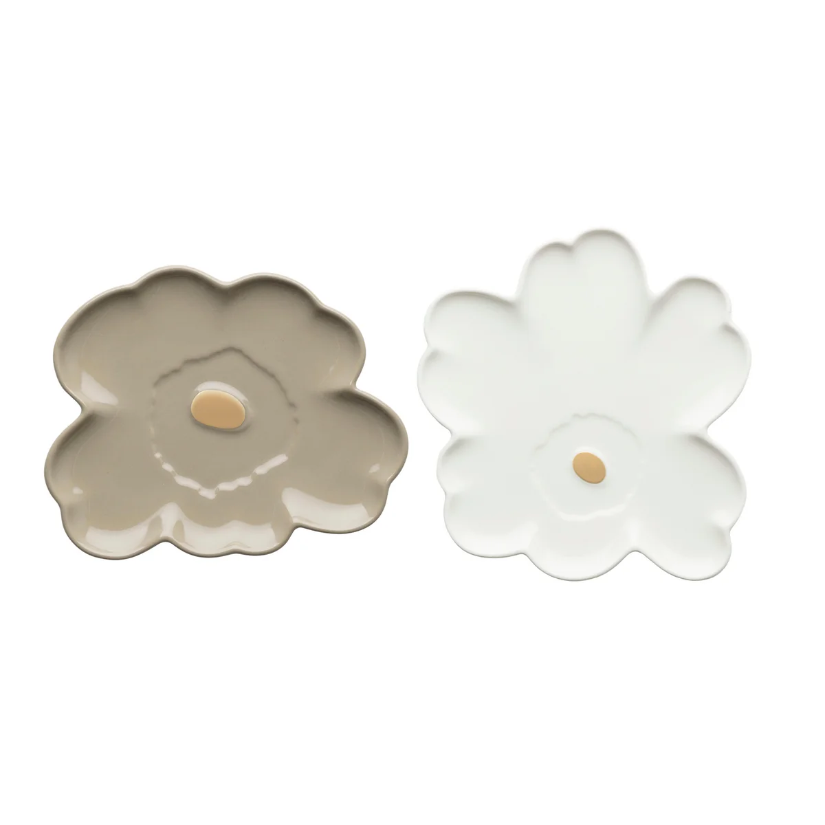 Le design de l'assiette, inspiré du célèbre motif Unikko de Maija Isola, allie légèreté florale et clarté scandinave.