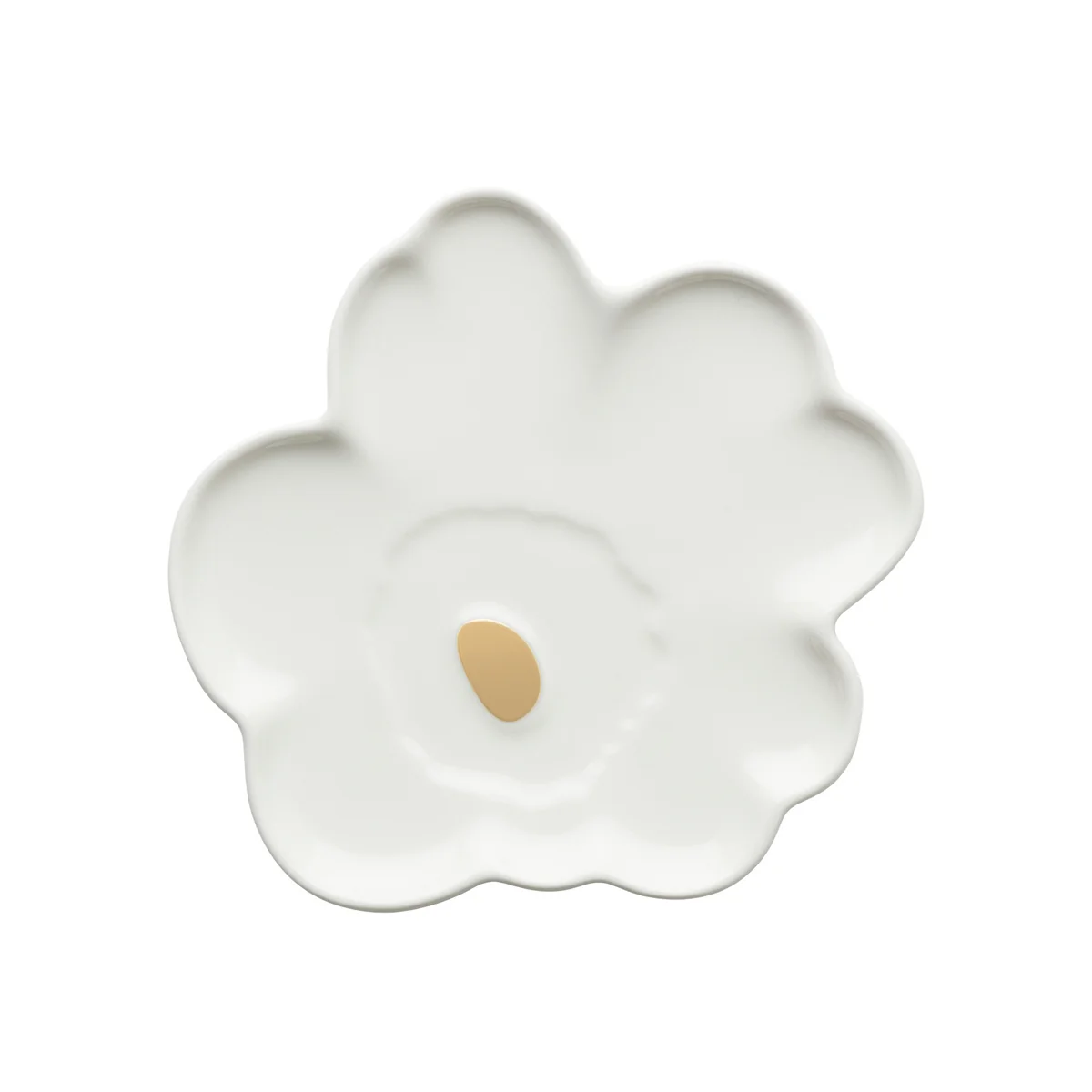 Le design de l'assiette, inspiré du célèbre motif Unikko de Maija Isola, allie légèreté florale et clarté scandinave.