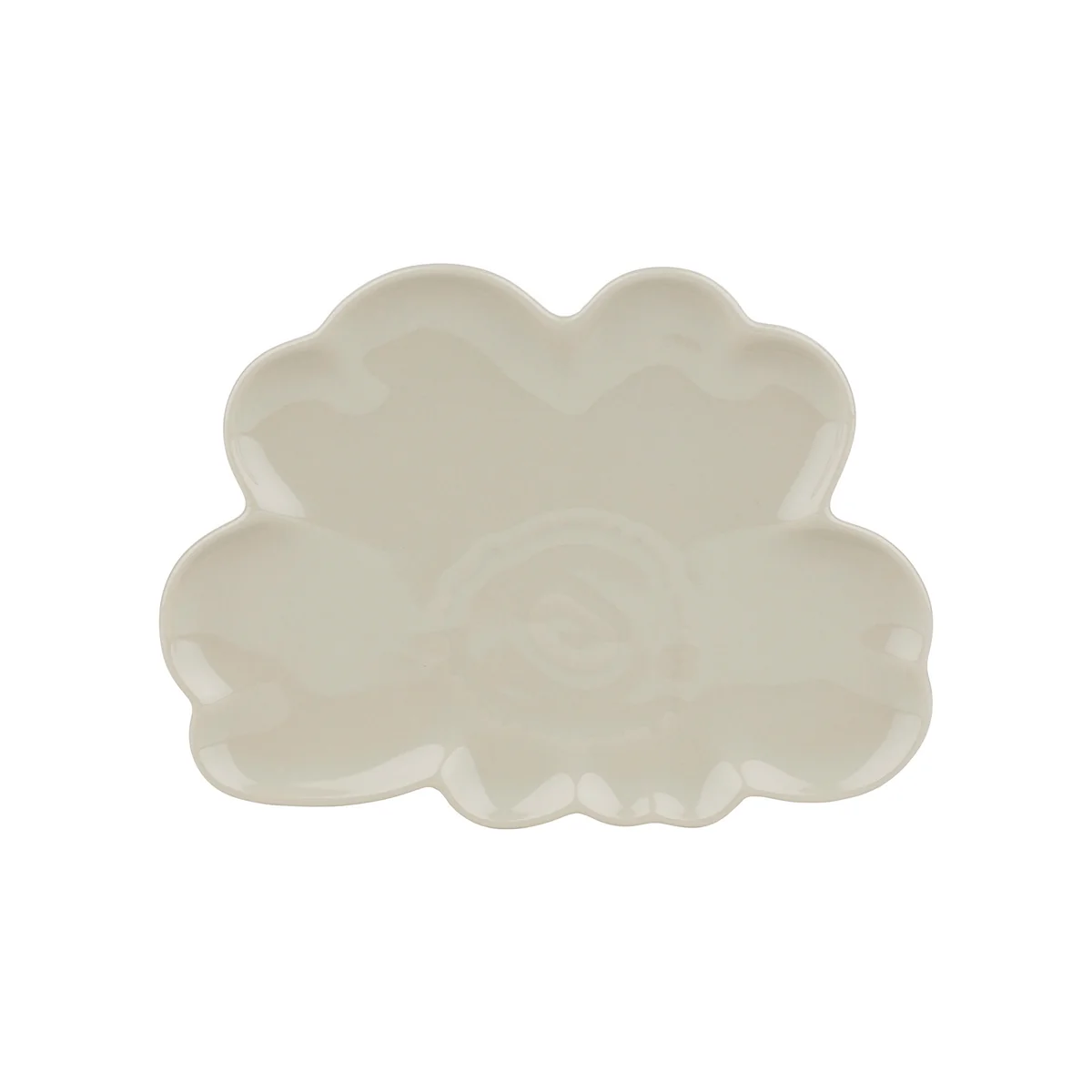 Le design de l'assiette, inspiré du célèbre motif Unikko de Maija Isola, allie légèreté florale et clarté scandinave.