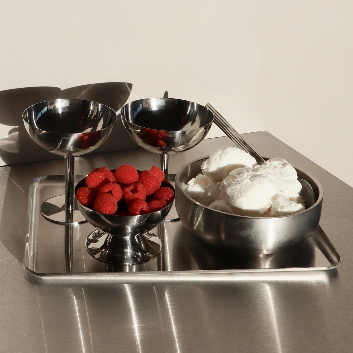 Le gobelet à glace de Nichba Design allie son design minimaliste à une esthétique moderne, à la fonctionnalité et en fait un complément raffiné pour chaque art de la table. Fabriqué en acier inoxydable poli de haute qualité, il est parfait pour les glaces, les sorbets, les desserts ou les petits snacks.