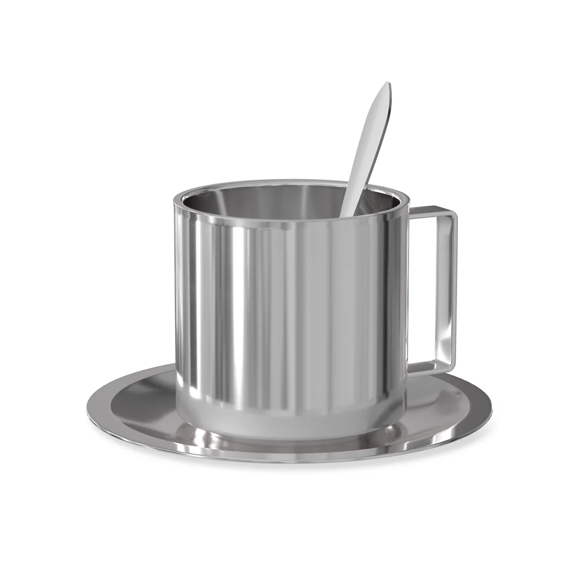 Le set comprend une élégante tasse à double paroi qui garde votre café chaud plus longtemps sans que l'extérieur ne chauffe. Il est complété par une cuillère et une soucoupe élégante qui complètent la présentation. Grâce à l'acier inoxydable robuste, le service à café est particulièrement durable, facile à entretenir et résistant au lave-vaisselle, ce qui le rend idéal pour une utilisation quotidienne et pour les occasions spéciales.