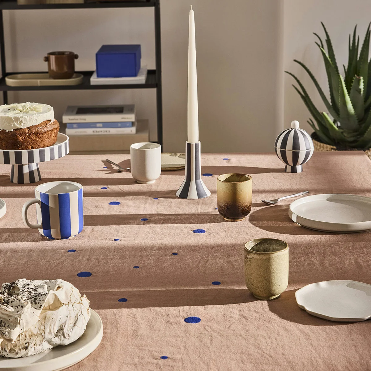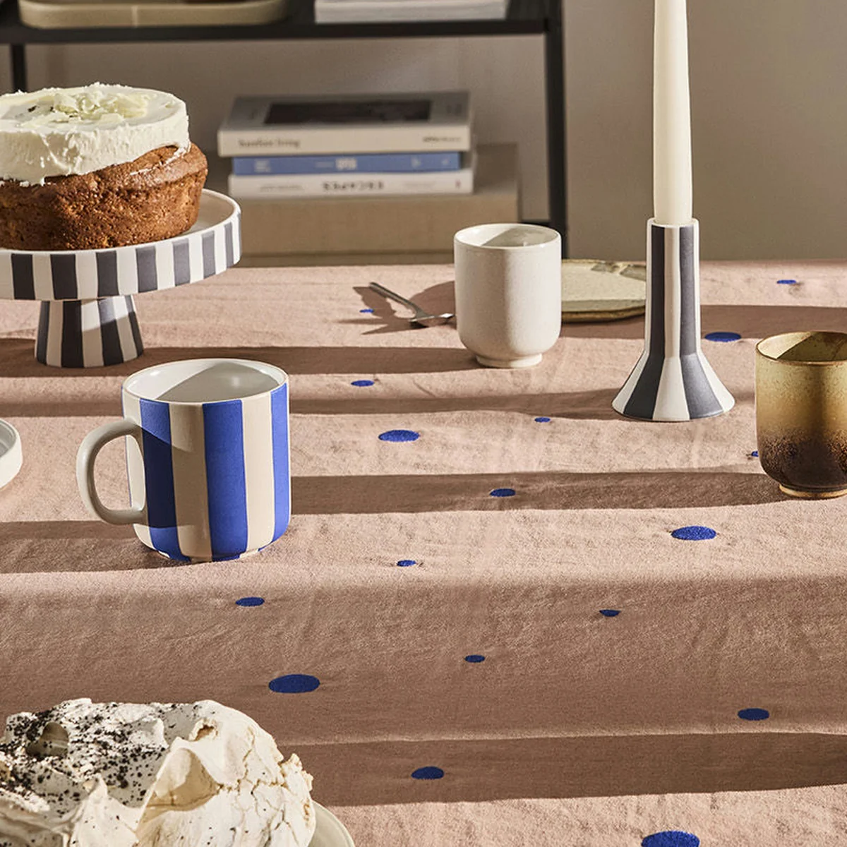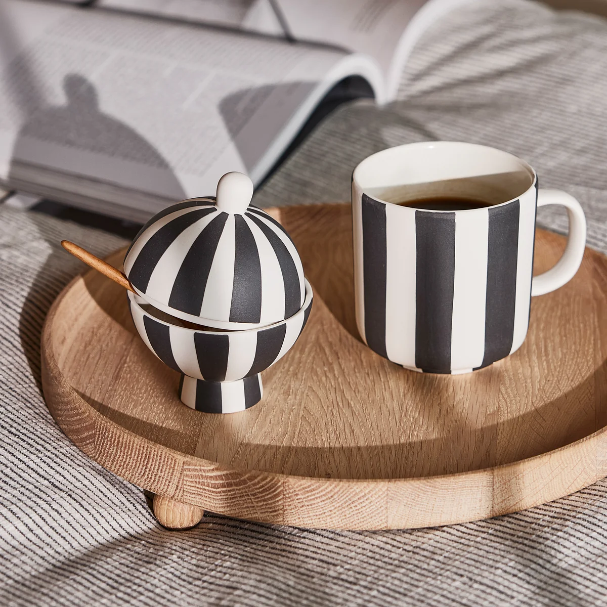 La forme simple de la tasse est brisée de manière unique par le motif à rayures distinctif peint à la main. La combinaison de lignes épurées et de touches subtiles confère à la tasse Toppu une esthétique intemporelle qui s'intègre parfaitement à tous les styles de cuisine. L'anse a été conçue de manière ergonomique afin de garantir une prise en main confortable de la tasse.