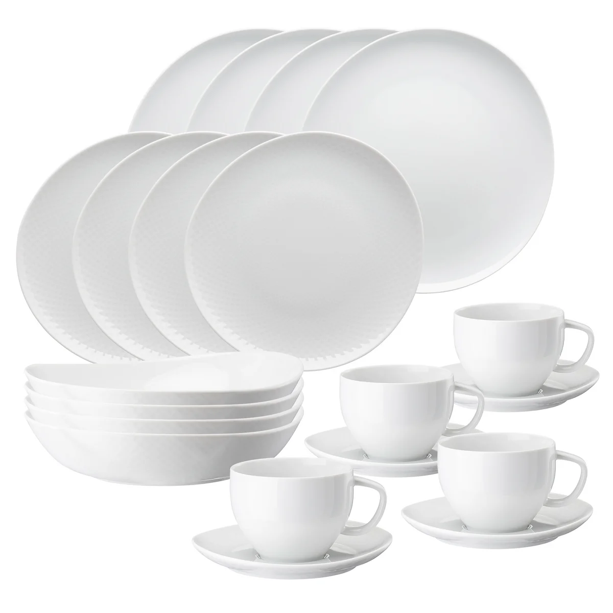Que la série de vaisselle Junto soit utilisée pour le petit-déjeuner quotidien ou pour le Junto dimanche, les assiettes et les tasses de la série Junto de Rosenthal s'intègrent parfaitement dans le cadre de vie. La porcelaine est ornée d'un relief en diamant qui se rétrécit vers le centre.