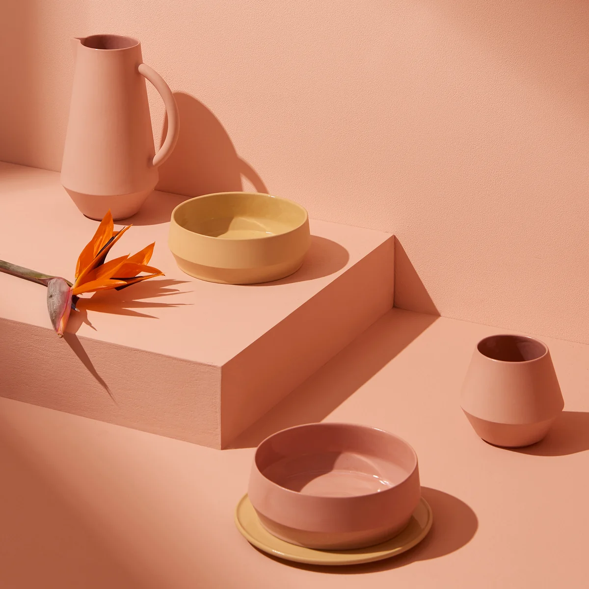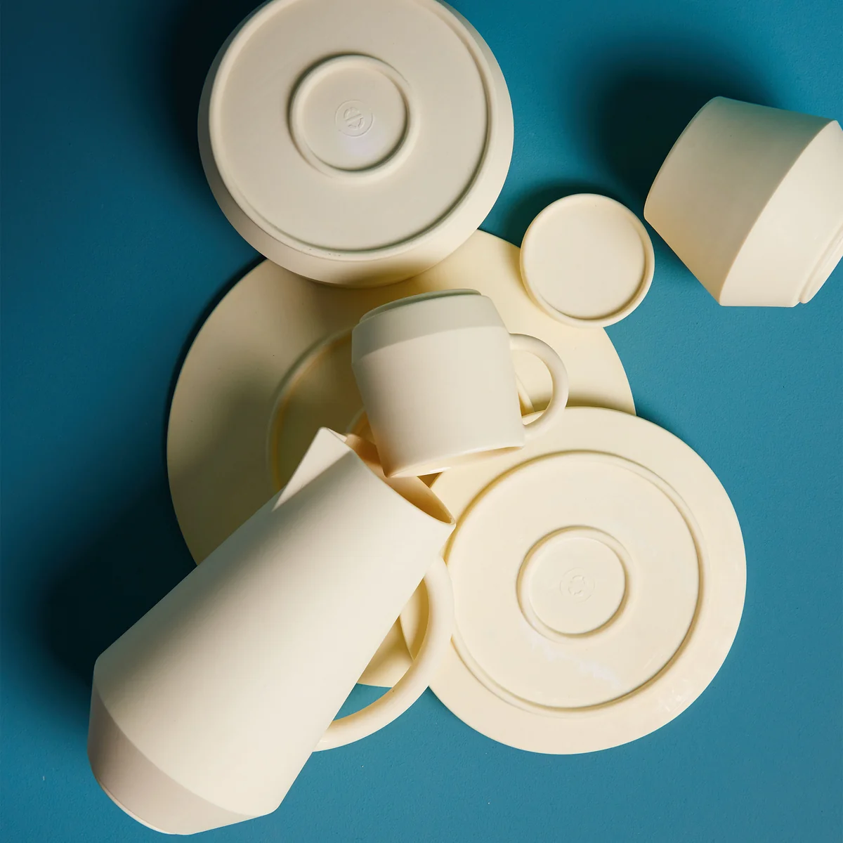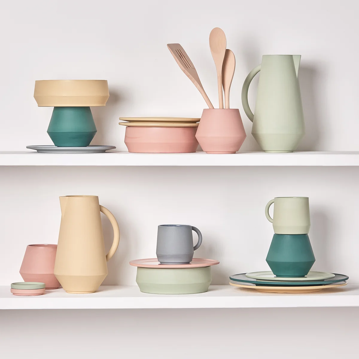 Avec quoi peut-on encore surprendre aujourd'hui Certainement avec le set de vaisselle pastel Unison de Schneid . On entre ainsi dans un monde de couleurs vives, mais qui ne sont jamais envahissantes - non, plutôt apaisantes et ludiques. Les assiettes sont disponibles en différentes tailles et couleurs et peuvent également être utilisées comme soucoupes grâce aux encoches.