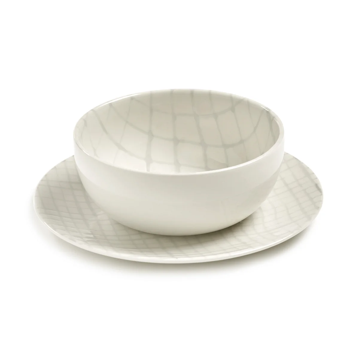 Le modèle unique Zuma bol by Kelly Wearstler pour Serax redéfinit le monde de la vaisselle. Inspirée par les principes révolutionnaires du Bauhaus, elle combine Zuma des designs graphiques numériques et un artisanat de maître pour créer une véritable œuvre d'art pour la table à manger.