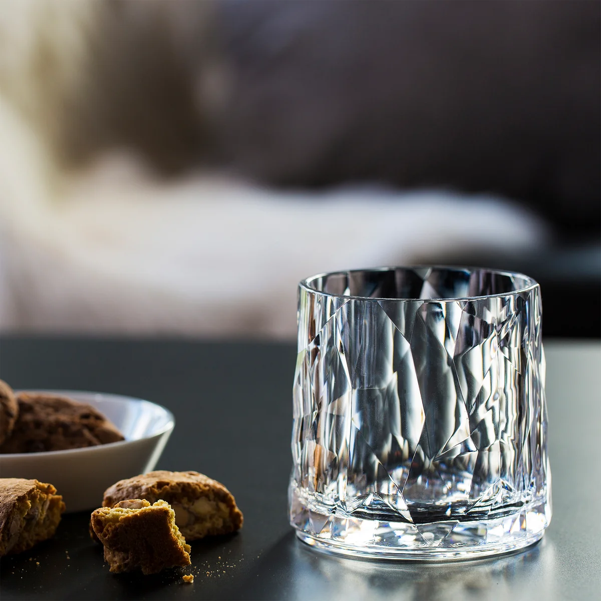 Le pied compact garantit en outre une bonne stabilité. En usage normal, le Koziol est Superglas est pratiquement indestructible et peu sensible aux rayures. Il se nettoie parfaitement au lave-vaisselle.