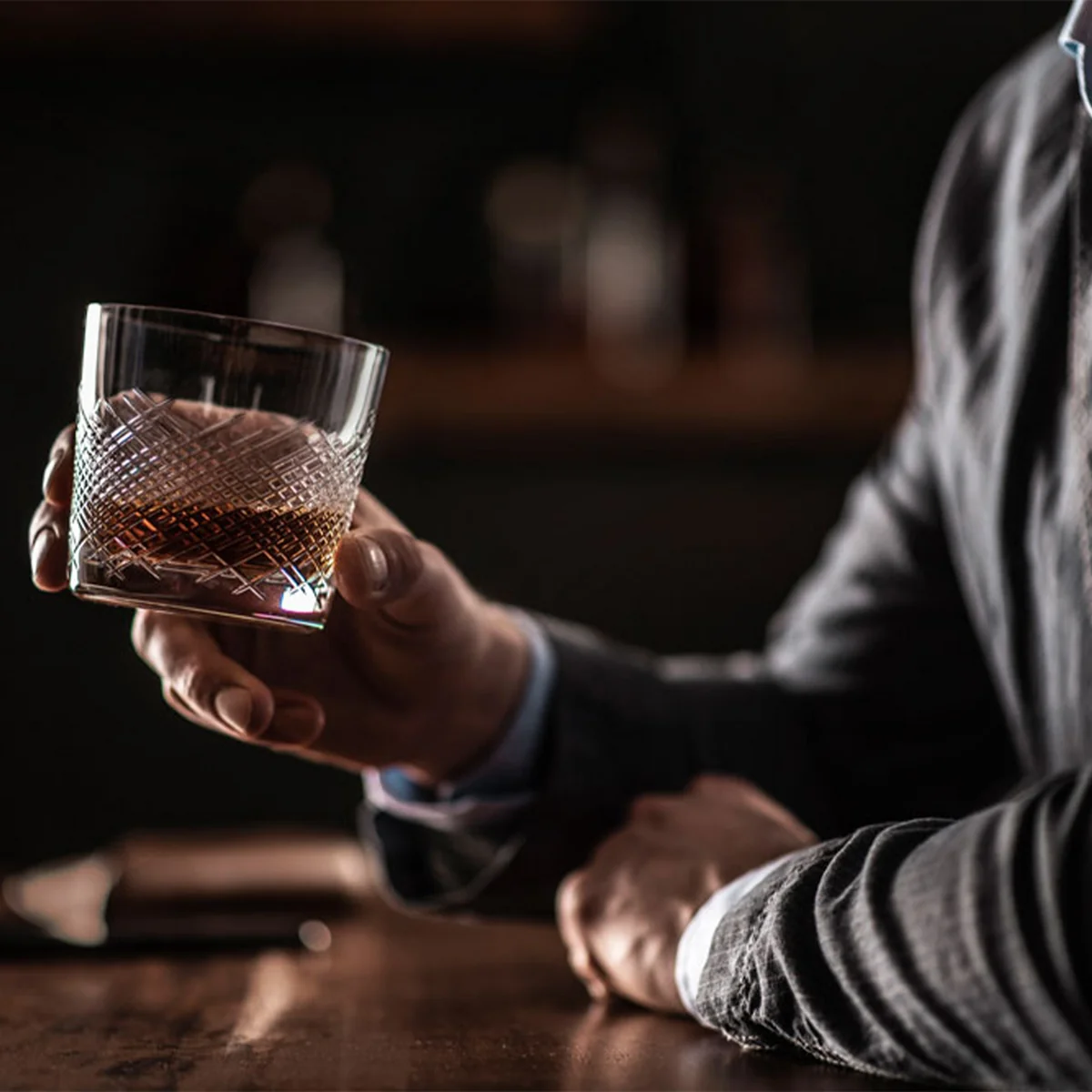 Les verres à whisky Bar Premium No. 2 ont été conçus par Charles Schumann pour Zwiesel Glas conçu. Grâce à ses nombreuses années d'expérience, il a laissé son empreinte sur la culture des bars dans le monde entier. Il a réinterprété le verre à whisky classique et lui a donné une structure de coupe spéciale qui crée un jeu de lumière et de couleur incomparable. Un whisky foncé met en valeur la structure et souligne le design raffiné.