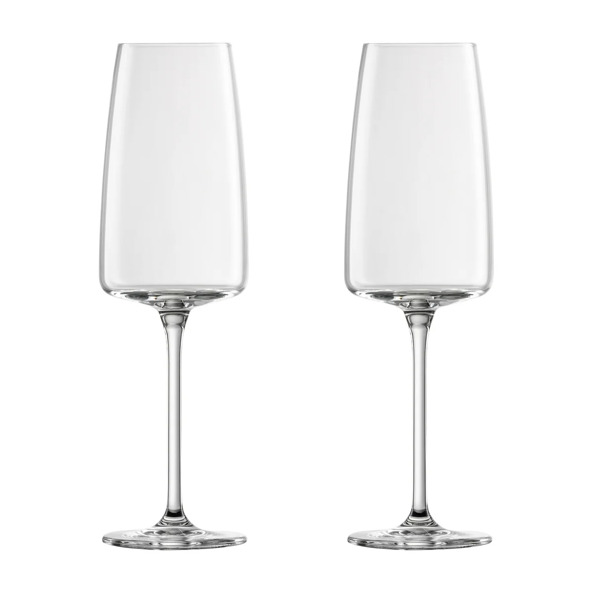 Les flûtes à champagne et à vin mousseux Vivid Senses du fabricant Zwiesel Glas sont - comme leur nom le laisse supposer - idéales pour l'épanouissement des spiritueux gazéifiés. Le point de moussage au fond du verre permet aux bulles de la boisson de pétiller de manière optimale et aux arômes des vins de se développer à merveille.