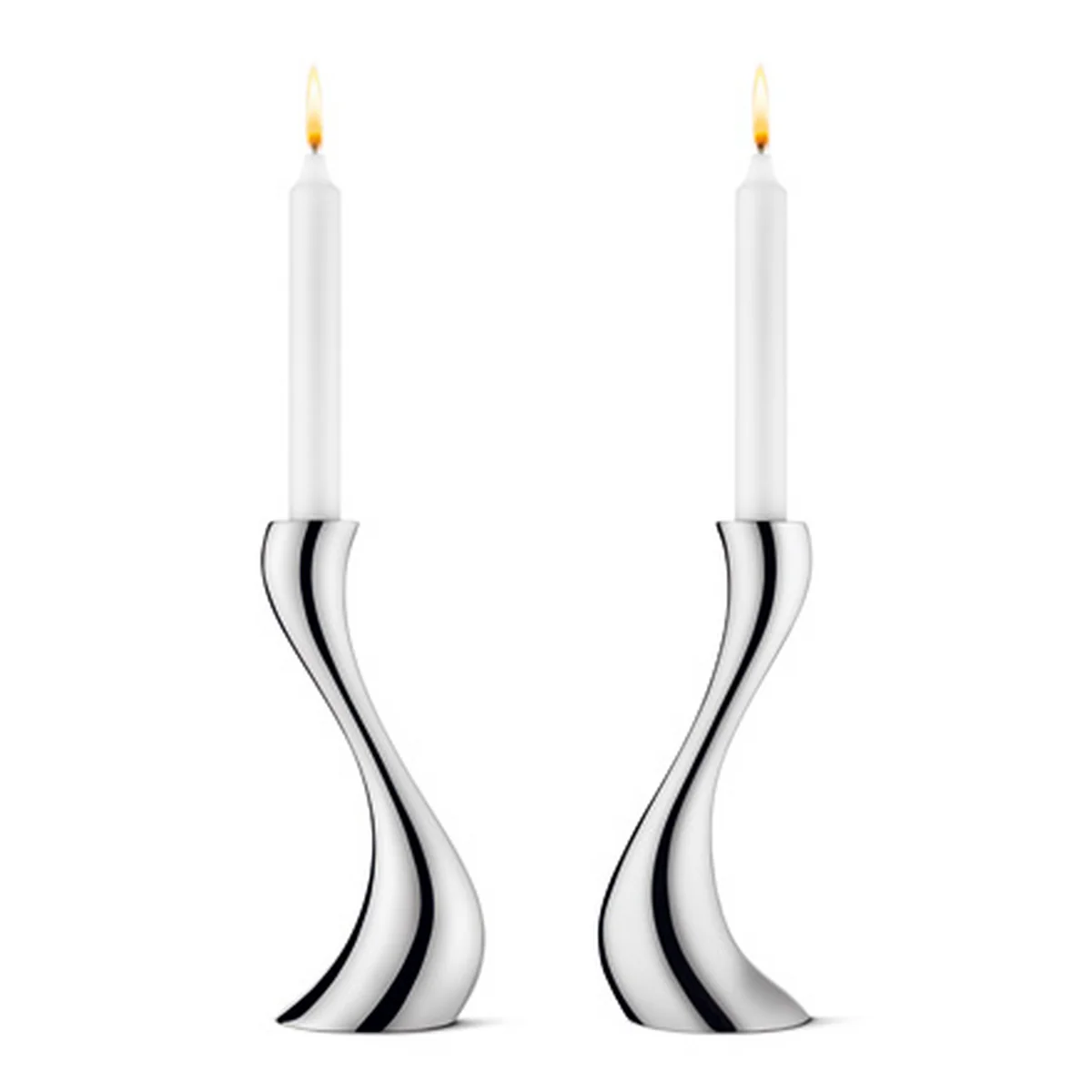 Quand les bougeoirs se pressent l´un à l´autre il se forme divers transformations » L´acier affiné brillant du bougeoir Cobra est réveillé par la vacillement des bougies, qui sont sécurisées dans le chandelier. Un seul bougeoir donne une déclaration audacieuse et originale. Avec différentes tailles et ensembles, des arrangements peuvent être créés par humour subtil, qui jouent un rôle clé dans tout l'ameublement. Le bougeoir Cobra est également disponible en version trois bras.