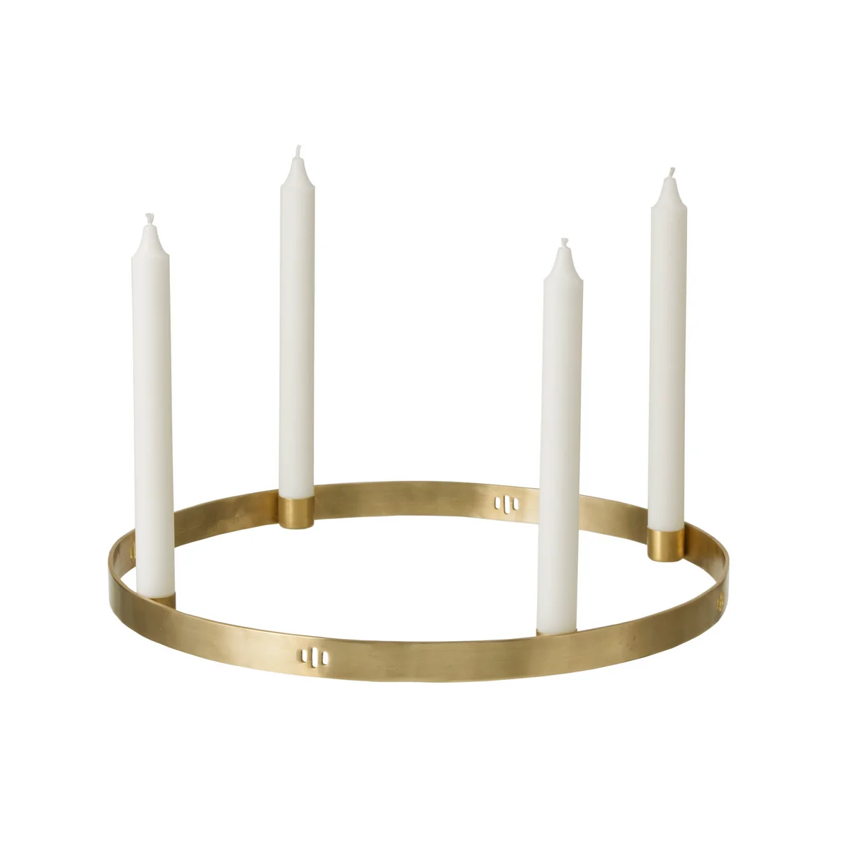 Le bougeoir en laiton Circle diffuse une ambiance chaleureuse avec jusqu'à quatre bougies, et pas seulement pendant la période de Noël.