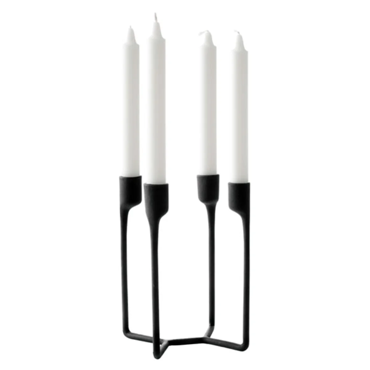 Heima est un bougeoir à quatre bras en fonte conçu par Francis Cayouette avec un design minimaliste et nordique.