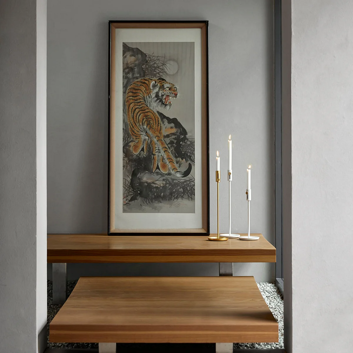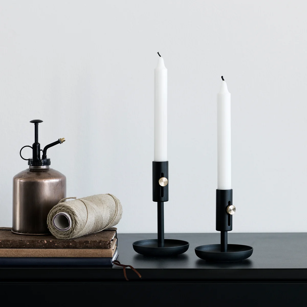 Granny est dotée d'une base qui, grâce à ses bords bombés vers le haut, recueille la cire fondue de manière fiable. Les tables et autres supports sont ainsi préservés des taches inesthétiques. Un bouton rond en laiton poli attire l'attention et facilite l'enlèvement de l'excédent de cire lorsqu'une nouvelle bougie est nécessaire.
