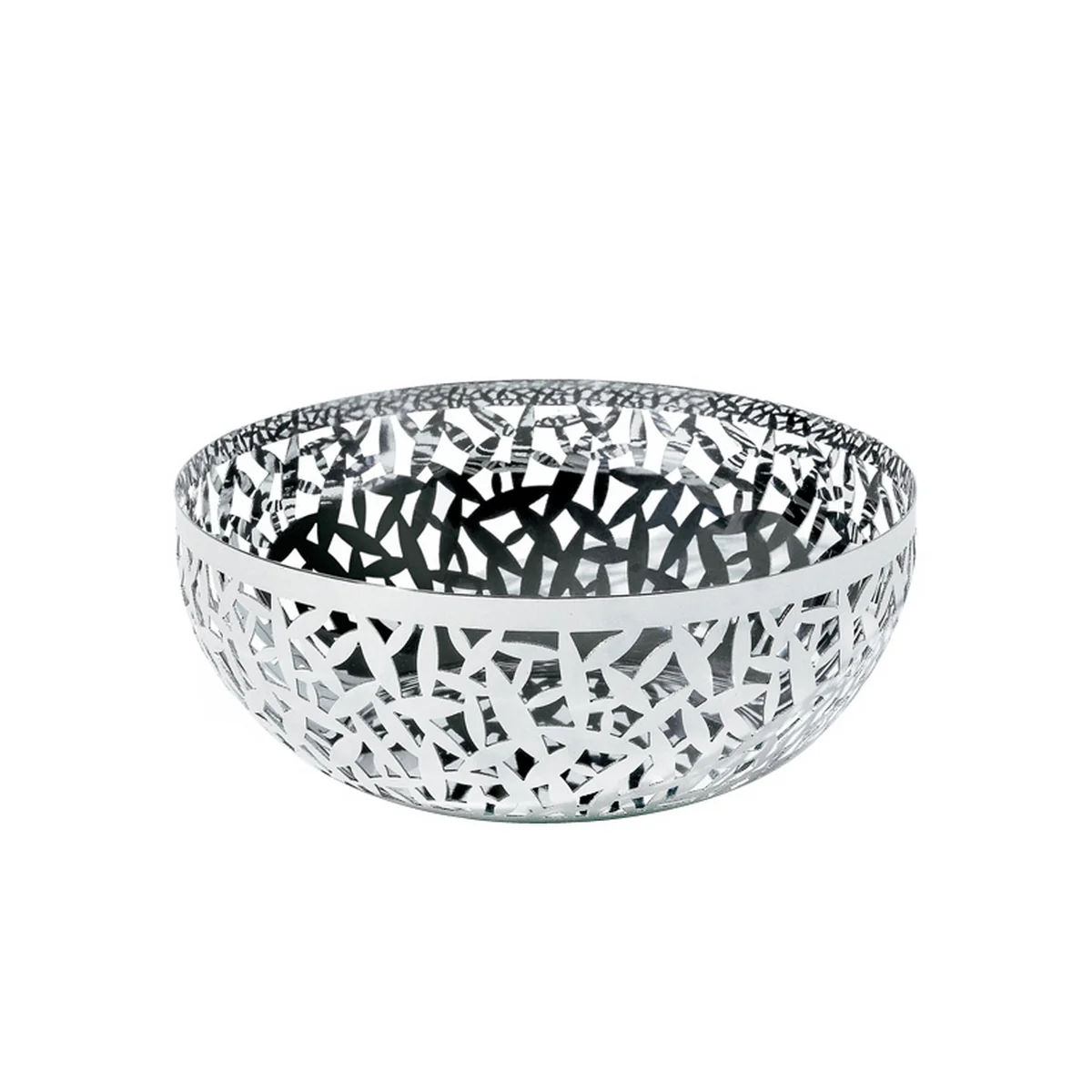 Depuis 2002, Alessi produit la coupe à fruits Cactus ! d'après le dessin de la designer Marta Sansoni. La coupe polie miroir et argentée brillante est en acier inoxydable 18/10 et est ajourée d'un motif abstrait. Ce motif a été réalisé grâce à une technique de découpe laser innovante.