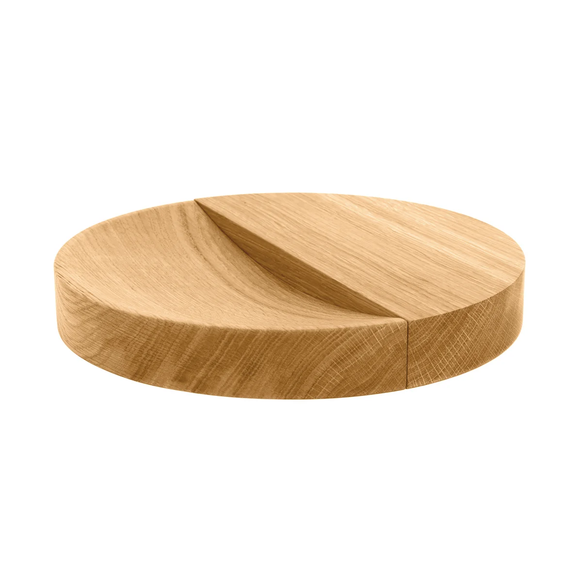 La coupe en bois massif Split Bowl conçue par la designer allemande Martha Schwindling pour Schönbuch offre de nombreuses possibilités d'utilisation. Les deux parties composant la coupe ronde peuvent à tout moment être réagencées ou utilisées seules. De plus, la surface concave peut être retournée, afin d'obtenir une surface plane et lisse. Vous pouvez aussi seulement retourner une moitié de la coupe et utiliser ainsi les deux parties à des fins différentes.