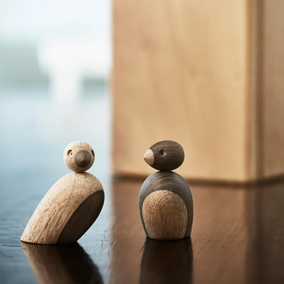 Le couple de moineaux de Kay Bojesen Denmark est composé de deux petits oiseaux inséparables qui convainquent avec leur design épuré et intemporel. Les deux oiseaux sont fabriqués dans un mélange de bois de chêne naturel et de chêne fumé.
