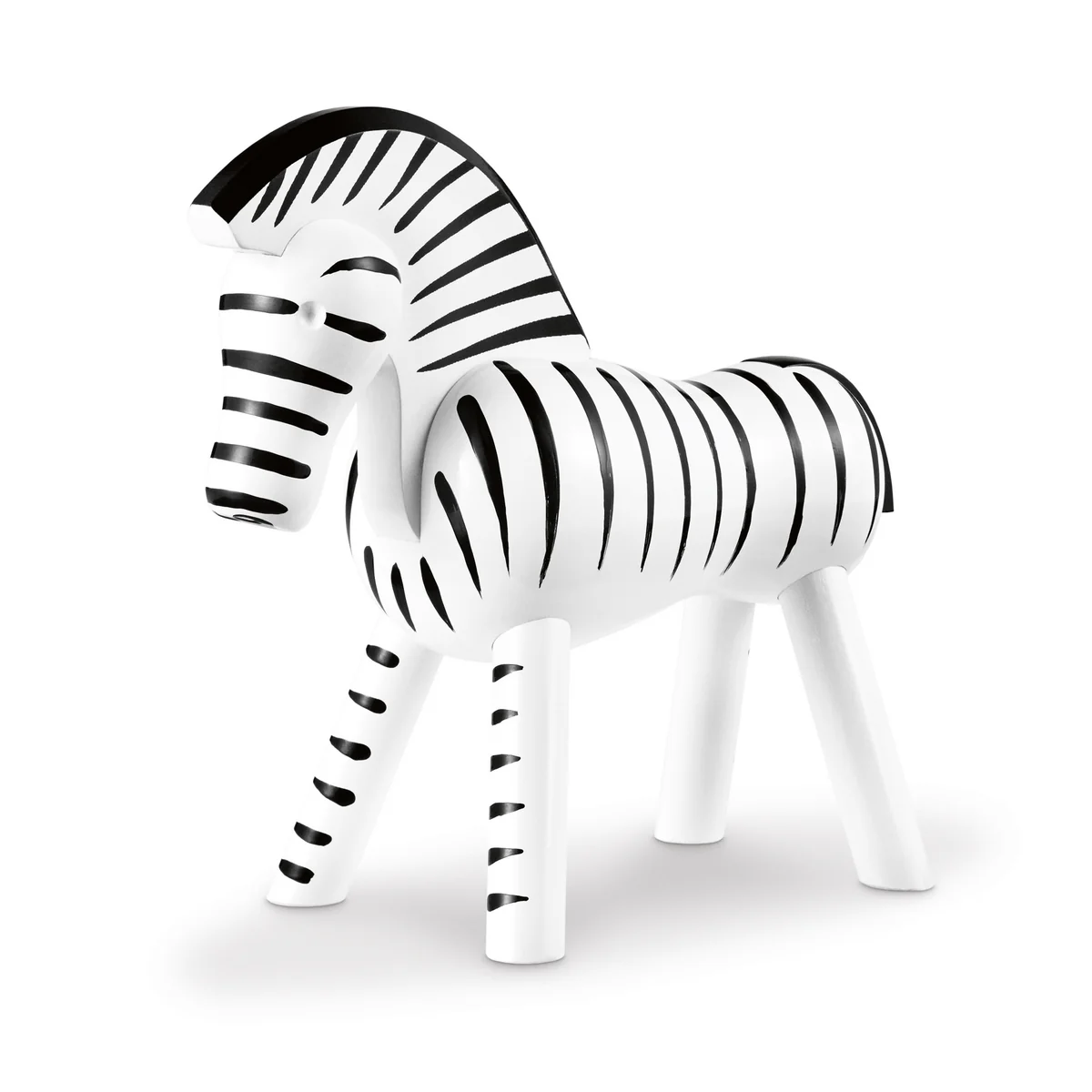 Le zèbre existait déjà bien avant l'apparition de l'animal le plus connu de Bojesens, le singe en bois. Tandis que celui-ci vit le jour en 1951, le zèbre en bois, lui, faisait son apparation déjà en 1935. Il fut l'un des premiers animaux exotiques du designer danois. Le zèbre galoppa directement de la savane dans le magasin de Kay Bojesens au coeur de Copenhague. Ses rayures charmantes viennent du pinceau de l'artiste Svend Johansen, qui donnaient aussi son plumage coloré au macareux.