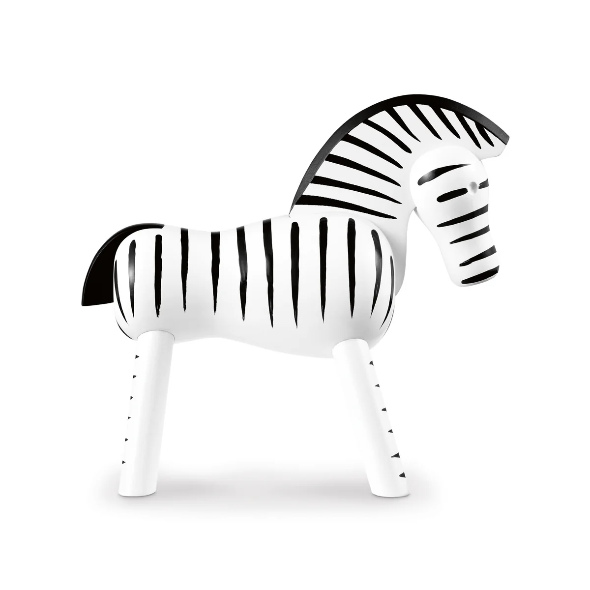 Le zèbre en bois est une des premières figurines de la collection des animaux de bois de Kay Bojesens. Le zèbre aussi se déplace dans la région frontalière entre figure fantaisiste et objet design.